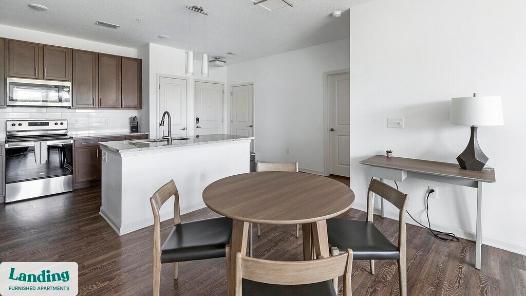 Landing offers flexible lease terms from weeks to months. Please always visit our website or contact us for the latest pricing & availability. Stay longer, save more: 6-Month Minimum base rent: starts at $2545/mo 12-Month Minimum base rent: starts at $2181/mo Landing offers flexible leases across a network of over 35,000 fully-furnished apartments throughout 375+ cities so you can rent on your terms, practically anywhere, and avoid the hassle of paying deposits or application fees. Visit to learn about all the benefits of a Landing membership, see our competitive up-to-date pricing, explore available apartments, take virtual tours, and make reservations online without jumping through traditional rental hoops. Landing's apartments at San Marco Promenade are designed for comfortable, easy living, with the ability to stay as long as you like. Experience living with Landing Every apartment is outfitted with all the modern essentials including: custom-designed furnishings, a fully-equipped kitchen with deluxe stainless steel appliances, a gourmet coffee maker, premium linens, Smart TVs, and incredibly fast, reliable internet for working from home. When you live with Landing, you'll enjoy a hassle-free experience with the added benefit of 24/7 access to our dedicated member experience team. Some of the nitty-gritty: a background check and proof of income are required; we're completely smoke-free; bundled utility packages and pricing vary based on length of stay; pet-friendly options available; listed price reflects a 12-month minimum stay.