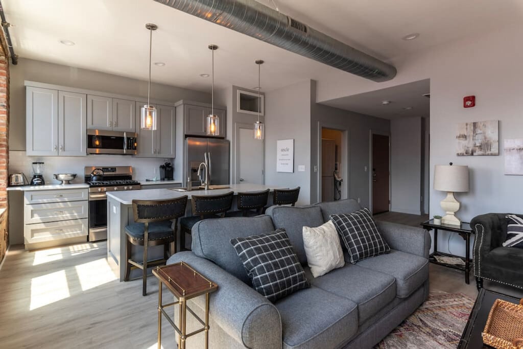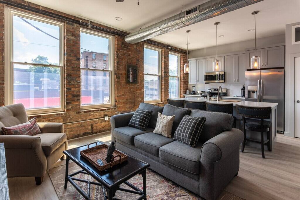 Imagine hosting your entire family in a grand historical building situated right in the heart of the city, perfect for a child's wedding or a 25th wedding anniversary celebration. This unique property can comfortably accommodate up to 30 guests with its 8 king and queen beds, 6 queen sofa sleepers, and 1 twin futon. The building comprises seven units, with one offering direct street access, while the others are accessible through a separate entrance. Each floor, starting from the second, features two fully furnished apartments, including a two-story penthouse suite on the fourth floor. Each apartment is thoughtfully designed with modern furnishings and a fully equipped kitchen, ensuring you feel at home. The property also boasts a private 400 sq ft rooftop deck, providing an exclusive space for relaxation and capturing unforgettable wedding photos. When renting the entire building for a minimum of two nights, guests have exclusive access to four parking spots behind the building, accommodating full-size trucks. The parking area also allows for easy loading and unloading directly into the elevator. Nestled in a vibrant neighborhood, this property is conveniently located next to the renowned Rhingeist brewery, offering guests a taste of local culture and entertainment right at their doorstep. Quiet hours are observed from 9:30pm to 8am, and any noise or disruptive behavior may result in termination of the reservation without a refund. Smoking and open flames are strictly prohibited, with a $300 cleaning fee for violations. Unauthorized parties are considered criminal trespassing under local laws and may lead to prosecution. Additional fees may apply for excessive cleaning, pet hair, or lost keys. Registration Number: 179038 [SI]