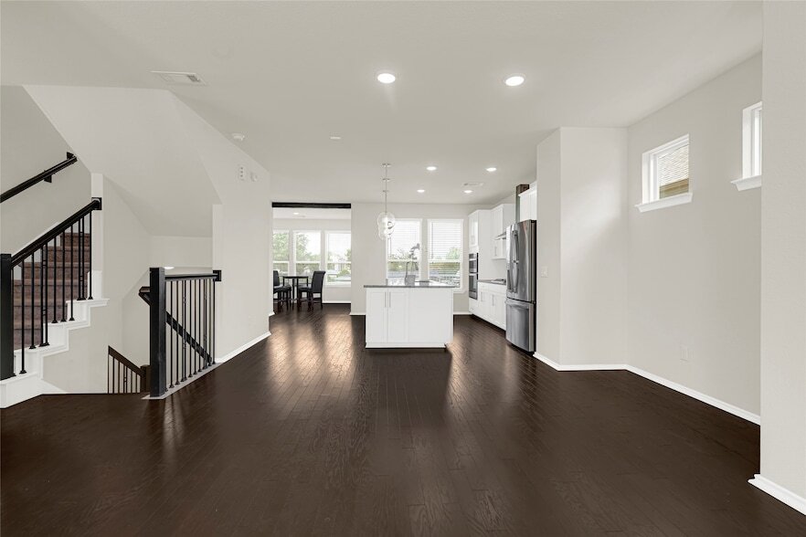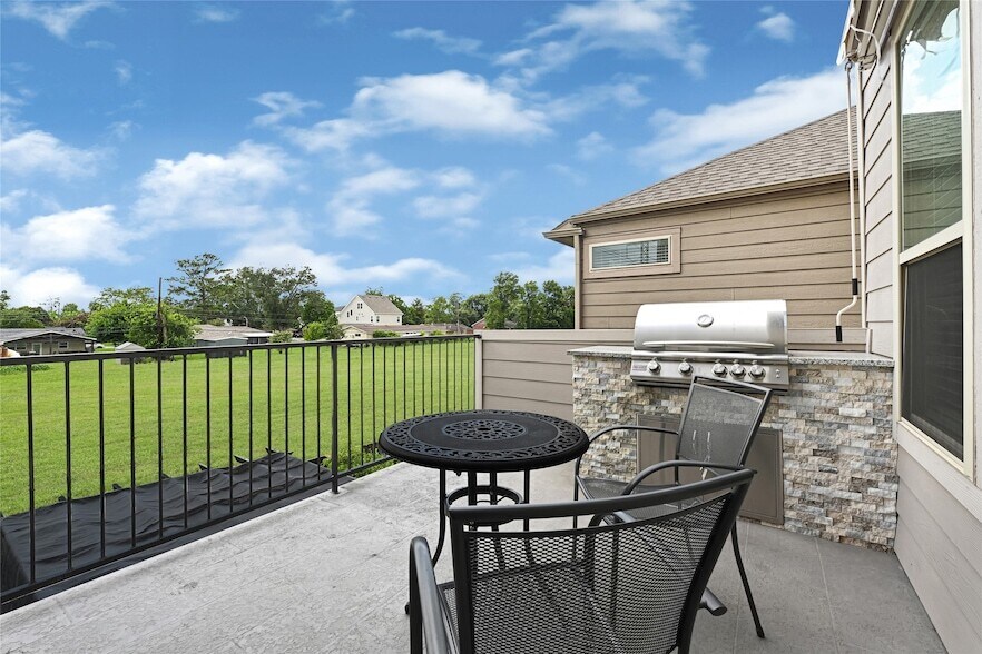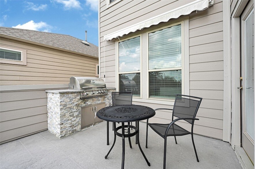 Experience contemporary living in this stunning three-story home featuring 3 bedrooms 2 bathrooms and 2 half baths. Also has a full second living room and office on the first floor.The striking exterior with clean lines welcomes you into an open-concept interior showcasing rich wood flooring, a spacious living and dining area, and a chef s kitchen equipped with granite counters, stainless steel appliances, double ovens, a gas cooktop, and a large island ideal for entertaining. The expansive living room flows seamlessly for comfortable gatherings. Upstairs, unwind on the private balcony complete with a built-in outdoor kitchen and grill overlooking a serene green space, perfect for morning coffee or evening relaxation. This meticulously maintained home offers abundant natural light, sleek modern finishes, and a two-car garage, all nestled in a desirable community with nearby dining, shopping, and quick access to major highways.