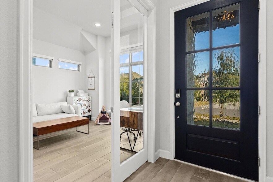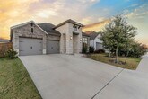 Beautiful, like-new 2022-built home in the highly desired Palmera Ridge community, just down the block from Tarvin Elementary in top-rated Leander ISD. Stunning full-lite French front doors that bring in abundant natural light and create a bright, welcoming entry. This modern floor plan is perfect for today s lifestyle, featuring a dedicated home office with French doors, ideal for remote work. The open-concept kitchen includes an oversized island, quartz counters, a 5-burner gas cooktop, stainless steel 2022 appliances, and a corner pantry. It flows effortlessly into a bright dining area and a spacious living room with a wall of windows that fill the space with natural light. The private primary suite offers dual vanities, a soaking garden tub, a separate glass-enclosed shower, and an oversized closet. Secondary bedrooms are thoughtfully sized with excellent storage. Step outside to a covered backyard patio, perfect for relaxing or entertaining. Refrigerator, washer, and dryer are included for an easy move-in. And with 2022 HVAC, insulation, windows, and appliances, tenants benefit from improved energy efficiency and potentially lower utility costs. Located in a quiet, beautifully maintained community with resort-style amenities: pool, clubhouse, trails, sidewalks, playground, and scenic common areas. Quick access to 183A, H-E-B, Costco, Target, and major employers. Available 12/15. Pet friendly (see restrictions).