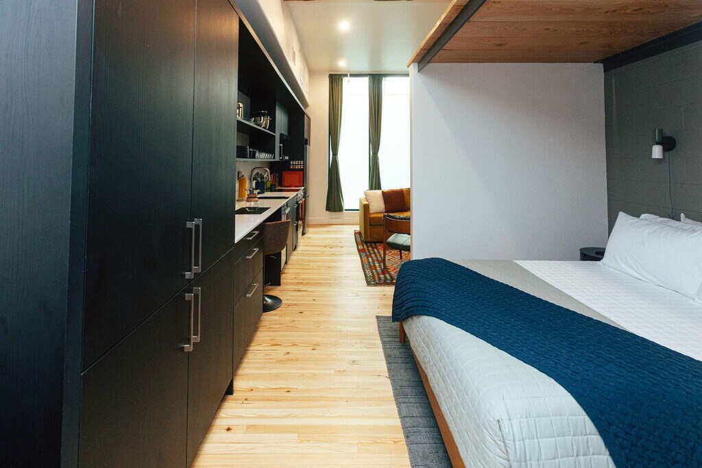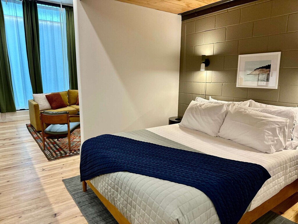 Feel at home in this sophisticated studio at The William, featuring soft atrium light, high ceilings, and an earthy-modern vibe. This loft overlooks The William’s skylit atrium and is accessible by elevator. This peaceful, light-filled loft features a queen bed, a queen memory-foam pullout sofa, a stocked kitchen, in-unit laundry, and fast Wi-Fi. The kitchen is fully equipped with cookware, chef’s knives, bar tools, teas, spices, reusable paper towels, and premium coffee gear, including a French press, Chemex, burr grinder, and locally roasted beans. Relax to curated vinyl on the Bluetooth-enabled record player. Paid street parking and nearby lots are available within a couple of blocks. Located in the heart of downtown Birmingham, The William sits amid the city’s best restaurants, cocktail bars, and cultural landmarks. Carrigan’s at The William is right downstairs, and guests receive a special discount. You’re surrounded by Birmingham’s top restaurants, all just a few blocks away: Helen, Bayonet, The Essential, El Barrio, Cafe Dupont, Paramount, Trattoria Centrale, Salud, Reve, and Pizitz Food Hall. For your morning coffee, Cala Coffee and Frothy Monkey are just a few blocks away. Downtown Birmingham is highly walkable, and most dining and entertainment are within 3–5 blocks. Birmingham–Shuttlesworth International Airport is approximately a 10–15 minute drive. Quiet hours are after 10:00 PM. There is no on-site parking, and paid street parking and nearby lots are available within a couple of blocks. You may hear a soft ambient hum from Carrigan’s or the atrium lounge below. Check-in is after 4:00 PM, and check-out is before 11:00 AM. Includes a dedicated workspace with fast Wi-Fi. [SI]
