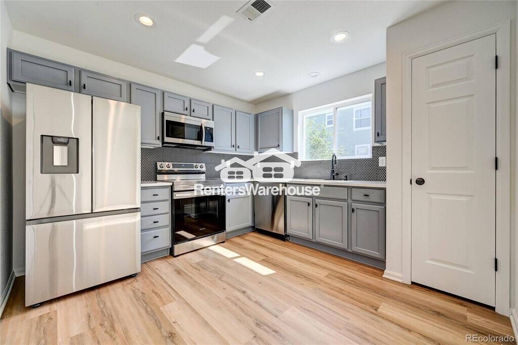 Welcome home to this fully updated 2-bedroom, 1.5-bath condo offering 1,180 square feet of stylish and functional living space. Located in a well-maintained community, this ground-floor home combines modern finishes with convenient access to parks, shopping, and the airport. Interior Highlights Step into a bright open-concept main level featuring new luxury vinyl plank flooring, modern light fixtures, and a seamless flow between the living, dining, and kitchen areas. The remodeled kitchen shines with gray shaker cabinets, sleek black hardware, stainless steel appliances, and a unique tile backsplash for a contemporary touch. Large sliding glass doors fill the space with natural light and open to your outdoor patio—perfect for relaxing or entertaining. Upstairs, both bedrooms feature plush carpeting, ceiling fans, and abundant closet space. The bathroom has been fully refreshed with modern tile, a new vanity, and designer flooring. A full-size washer and dryer are included in-unit for your convenience. Outdoor & Community Features Enjoy your own outdoor living area that opens to a landscaped shared green space—great for lounging or a morning coffee. The community is part of a well-kept HOA offering walking paths, open spaces, and nearby parks. Location & Lifestyle This home offers exceptional access to everything you need: -Groceries & Essentials: Costco, Sprouts, Walgreens, and King Soopers (2–10 minutes) -Airport: Denver International Airport (10 miles / 15 minutes) -Nature: Rocky Mountain Arsenal Wildlife Refuge (8.6 miles / 17 minutes) -City: Downtown Denver (16.8 miles / 25 minutes) Whether you’re commuting, exploring nature, or enjoying the city, this home puts it all within easy reach. Parking -Includes 1 reserved parking space. Pet Policy: Small pets only; $250 pet deposit, $25/month per pet $60/adult Application fee. $199 one-time Admin fee. Rental License: 2025-BFN-0021955