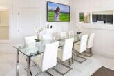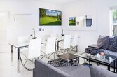 Welcome to your dream vacation paradise inside PGA Village Resort, just 250 yards from the Golf Club House and close to shopping and restaurants. This is the largest golf villa in the PGA Village clubhouse area, approximately 1800 square feet, accommodating up to 10 guests with four bedrooms, a sleeping den with a twin bed, a living room, three bathrooms, a fully equipped kitchen, and two entertaining patios. Enjoy TVs in all rooms and a large 75-inch living room smart TV with Netflix for your favorite shows. The fully equipped kitchen features a stove, oven, over-the-counter convectional microwave oven, fridge-freezer, dishwasher, coffeemaker, toaster, blender, pots and pans, cooking and eating utensils, iron, ironing board, ice-bucket, wine glasses, and an extra kitchenette bar with two chairs. A large-size dining table with eight dining chairs ensures you have everything you need to cook up a storm and entertain guests. The living room offers beautiful views over the golf Pitch and Putt area and is great for relaxing with a large sofa group, a table, and a large 75-inch smart TV with Netflix. Free parking is available outside your door, and high-speed wireless internet ensures you stay connected. Enjoy internet entertainment with free movies on our Netflix account. A computer workstation with a laptop is available, along with a Nespresso cappuccino latte maker, Keurig coffee maker, and Sodastream to make your own sparkling water or soda. A washer and dryer, iron and ironing board, hair dryer, hangers, and discount golf and golf rentals are also included. Additional housekeeping can be arranged at nominal charges, and personal chefs and grocery shopping services are available at an additional cost upon request with advance notice. Welcome to the ultimate golfer's dream destination, located in the heart of PGA Village! This welcoming home is situated right by the first tee, offering unparalleled access to the world-renowned golf courses that make this community a true golfer's paradise. You'll be just steps away from the complimentary 6-hole practice course, perfect for honing your skills before hitting the links. Centrally located to all the best amenities that Port St. Lucie has to offer, you're just 8 minutes from the Landing at Tradition and Shoppes of Victoria Square, and 15 minutes from the Town Center. The Port St. Lucie Botanical Gardens are less than 20 minutes away, offering a peaceful oasis of natural beauty. The rate fluctuates based on the number of persons staying and visiting, so inquire for a customized rate quote if you plan on adding more persons to your group in an existing reservation. No third-party reservations, non-registered guests, and no local visitors are allowed without prior approval before making a reservation. Tenants or guests need to inquire before making the reservation. Before being accepted, we need to know the number of occupants and the reason for the trip. For any extended or far-out stays, inquire with us before making an instant booking. A visitor's agreement must be signed after the reservation, acknowledging the house and community home rules. The lobby room features a computer workstation and high-speed Wi-Fi internet access, perfect for those who need to get some work done during their stay. A laptop computer is not included.