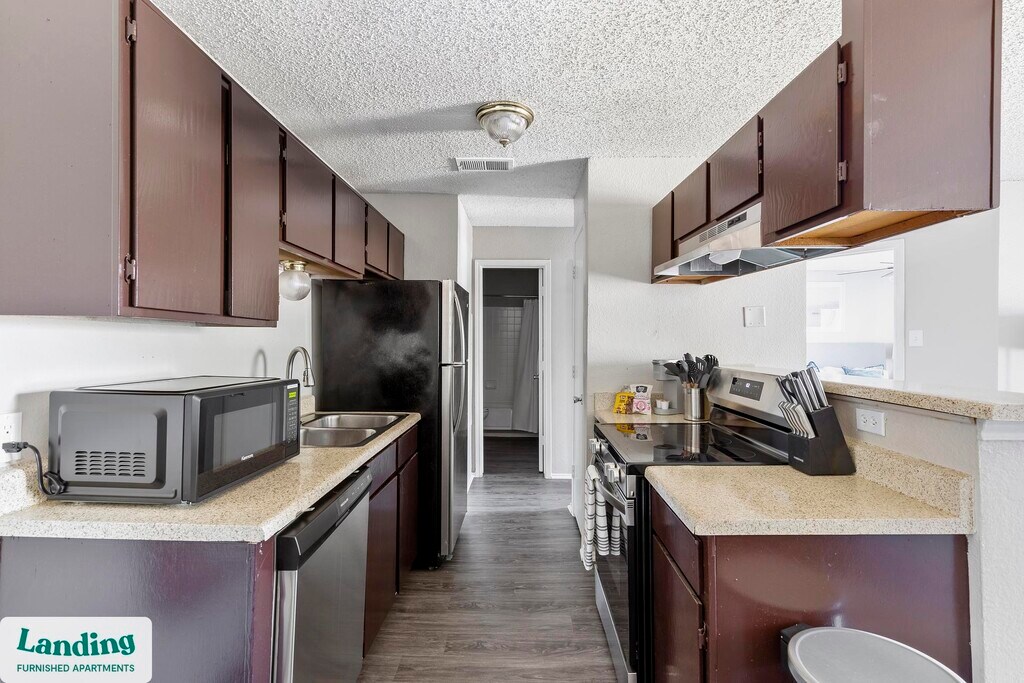 Landing is a top-rated, fully furnished apartment network with thousands of homes across 250+ U.S. cities. With premium amenities, a mobile app to manage your stay, and 24/7 support. Our apartments have everything you need for monthly and longer stays.: 6-Month Minimum base rent: starts at $2017/mo 12-Month Minimum base rent: starts at $1627/mo Landing's apartments at Quail Ridge are designed for comfortable, easy living, with the ability to stay as long as you like. All Landing apartments include: - Fast Wi-Fi - Stylish furnishings - Fully-stocked bathroom - Smart TVs - Comfortable bed - Professionally cleaned - Guest support Stay longer for cheaper! The longer you stay, the bigger your discount. Price advertised is for a 12-month stay, including all utilities and fees, and may vary based on availability. We manage multiple units at this property. While all feature a similar style and furnishings, the layout and specific design elements may vary slightly from the photos provided. Some of the nitty-gritty: a background check and proof of income are required; we're completely smoke-free; pet-friendly options are available; parking is subject to availability.