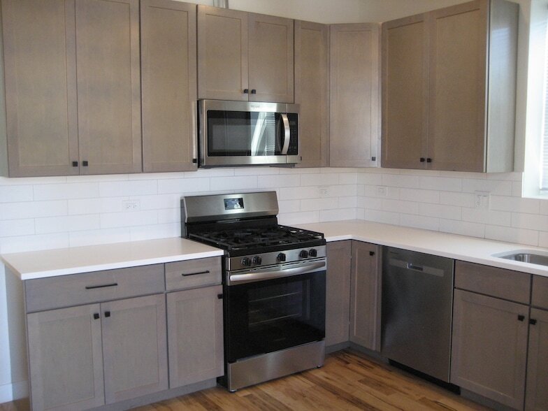 Top Floor unit with 3 bedroom and 2 bathrooms available for rent in completely rebuild from top to bottom 3 story building! Everything is new-gourmet kitchen with stainless steel appliances and new cabinets, quartz countertops, hardwood floors, bathroom, tieless and vanities, faucets, window, doors, trims! High selling! In unit Laundry! Fenced yard, secure gate. One parking spot available for $ 125. No security deposit! Only move in /out fee $ 800. Section 8 welcome! Good location, close to 606 trails, grocery stores and other stores, close to the bus stop. Welcome Home!