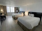 Stunning studio in Marco Polo(Ramada), Resort style, features ocean view, beach access, two queen size beds, one bathroom, open kitchen with electric burner, coffee maker, refrigerator, microwave. Amenities include, pool, gym, bar, beach service, one parking space and valet parking.