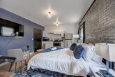 Relax in this modern downtown Milwaukee studio apartment, perfectly located near award-winning restaurants, shops, historic landmarks, and top attractions. From this prime spot, exploring the city and surrounding region is effortless. After a day of dining, shopping, or sightseeing, return to your cozy retreat to unwind and recharge in comfort, making it the ideal stay for business or leisure. This studio apartment offers a socially and environmentally conscious living environment, along with top-notch customer service and unparalleled amenities. The living space features an innovative open-concept design that blends the living and dining areas with the kitchen, creating a modern and sleek living experience. Enjoy the stylish interior design with carefully picked amenities and decorations, including a 4K 55" HDR Smart TV, a queen-size bed with a luxury foam mattress, and an office desk and chair. The fully equipped kitchen allows you to easily prepare your favorite meals with modern amenities such as a microwave, stove, oven, refrigerator/freezer, toaster, coffee maker, and more. The inviting full bathroom is completely private and stocked with all essential toiletries. There is no parking included in this listing, but there is parking throughout the neighborhood including meter and free street parking. The city of Milwaukee requires permits for overnight parking on the street, and you can obtain up to 3 nights by calling the city or filling out an online form. Pets are allowed depending on size or if they are service animals, with an additional cleaning fee of $20 per night. There is a 2 pet maximum and only cats and dogs are allowed. If pets are brought without prior notification, there will be a $500 fee. Located in downtown Milwaukee, this apartment is near award-winning restaurants, shops, historic landmarks, and top attractions, making it easy to explore the city and surrounding region. Quiet hours are between 10pm and 8am every day. Violations may result in cancellation of booking and removal from the property without refund. There is a strict no-party policy, and any parties or events will result in police being called and removal from the property with no refunds. No unauthorized guests are allowed, with a $100 fine per guest if discovered. Smoking is prohibited on this property, including balconies and in or around the building, with a $500 fine for any signs of smoking. Extra cleaning fees may apply if the property is left in a state that necessitates additional cleaning. Lost or unreturned keys will incur a fee of $80 for key replacements and $150 for key fob replacements. Early check-in or late check-out may be accommodated at a fee of $35 for the first 2 hours, but a $500 late check-out fee applies if delayed without authorization. Includes an office desk and chair, high-speed Wi-Fi, and reading lamps, providing a comfortable space for remote work. [SI]