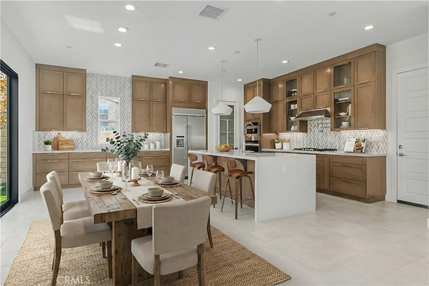 Situated within the exclusive gated community of Plum Canyon Estates, this beautifully appointed home showcases a bright and airy open-concept floor plan highlighted by high ceilings and oversized windows that flood the interiors with natural light. The spacious living room flows effortlessly into the upgraded eat-in kitchen, which is equipped with high-end stainless-steel appliances, sleek quartz countertops, a stunning waterfall island with bar seating and a large pantry. An oversized sliding glass door extends the living space outside, creating a seamless indoor-outdoor flow to your private backyard, which features low-maintenance artificial turf. Upstairs, an inviting loft provides flexible living space, accompanied by four generously sized bedrooms, three full bathrooms and a dedicated laundry room for added convenience. The luxurious primary suite serves as a private retreat, offering a large walk-in closet with custom built-ins and a spa-inspired bathroom complete with a double vanity and oversized rainfall shower. Additional highlights include a main level bedroom and bathroom, custom blinds throughout and an attached two-car garage. This property is ideally located in a secure, well-maintained community in one of Santa Clarita s most desirable areas, offering easy access to freeways, shopping, dining and top-rated schools.