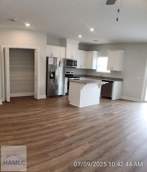 Heritage Pointe townhomes in Hinesville! Located on the edge of Hinesville close to new restaurants & up-and-coming shopping! Quick commute to Ft. Stewart, Hwy 17 & I-95! Charming end-unit townhome with 3-bedroom, 2.5-bath. Granite counters throughout! Open living space on the first floor with access to the 1-car garage, as well as the backyard. The kitchen features white cabinetry with granite counters & stainless appliances! From the island look out to the dining area & family room. Enjoy a sodded backyard with irrigation from the patio! Located upstairs are two bedrooms, hall bath, laundry room & the primary suite. Within the primary suite is a vaulted ceiling with ceiling fan, walk-in closet & private bath. The private bath includes a dual vanity with granite counter, shower & another walk-in closet!