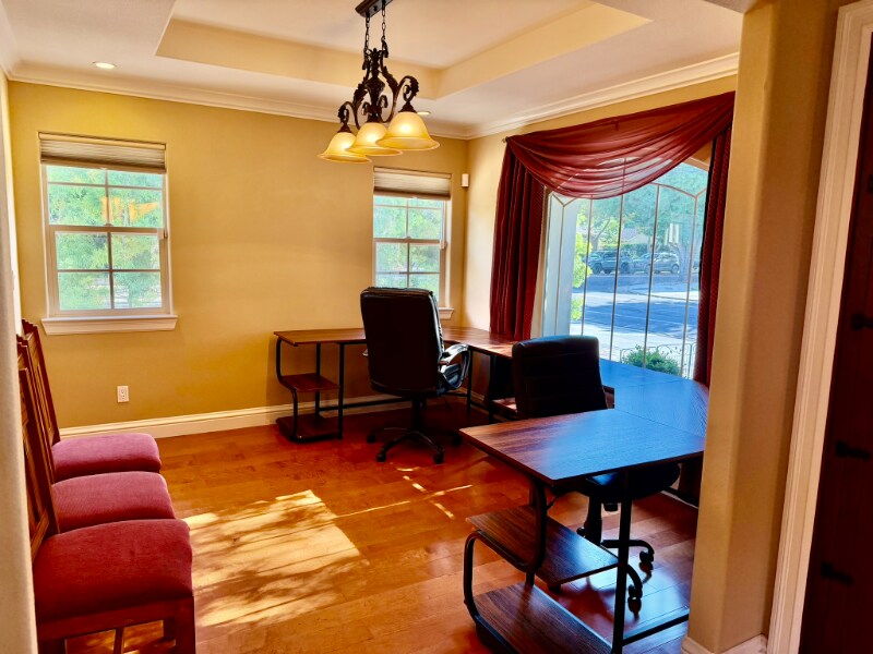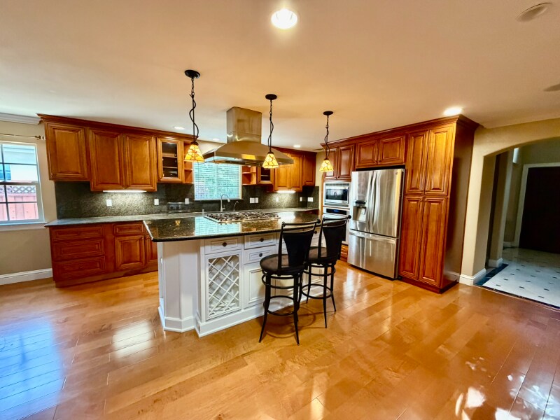 Property Id: 2165790 Gorgeous home in Willow Glen area, San Jose. Friendly neighbors + excellent schools nearby (e.g., Booksin Elem., Willow Glen, etc.). Ranch house; 2,800 sqf, 4 Bed & 3.5 baths. Open floor design + high ceiling foyer. Gourmet kitchen w. custom wood cabinets & stainless steel appliances. The Jack-N-Jill bedrooms: share a large bathroom (2x sinks). Guest suite: offers large walk-in closet with an attached bathroom (shower, sink, & toilet). MB: offers ceiling fan, large walk-in closet, heated bathroom tile floor, 2x sinks, & a bathtub with jacuzzi jets Office has desk furnishing. 2x fireplaces. Washer/Dryer inside Back yard kitchen (gas grill, ref., & sink), a basketball hoop, & a running fountain. Paver finishing throughout the lot. Hardwood, carpeted bedrooms, & tiles in the foyer & bathrooms Solar panels, reverse osmosis clean water sys, 2-car detached gar. + more. Remotely operated front + ADT security Renter's insurance required No smoking Good credits & a current credit report