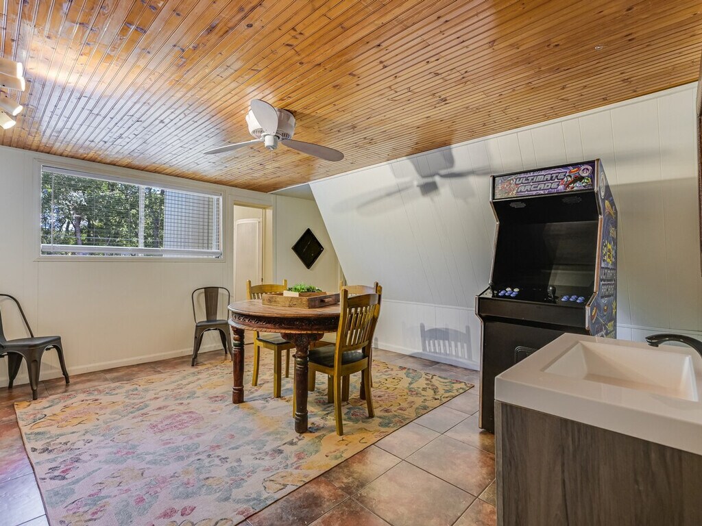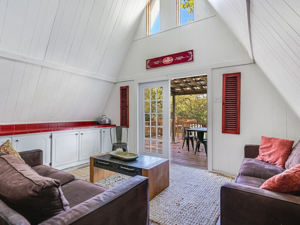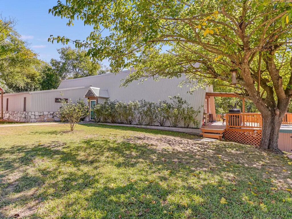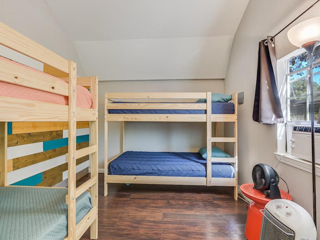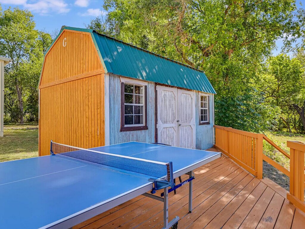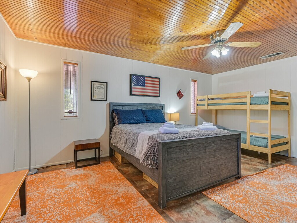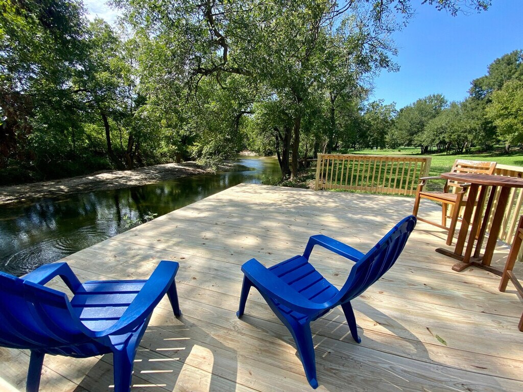 Get a memorable experience and feel at home in this property with 450 feet of riverfront, featuring a shallow, sandy area perfect for little ones, while deeper waters invite catfish enthusiasts. Kayak along or relax in the 12-foot swim spa. Create lasting memories with your family. There is a ton to love and a few expected quirks with a hand-built house out in the country. You might see all types of wildlife (deer, skunk, beaver, snake etc.), you may need to spray a wasp nest, and you will probably hear the train a couple of times. There are two bathrooms in the main house: one has a big Jacuzzi-style tub and the other has a shower with a dedicated on-demand water heater. There are two other cabin rooms completed that have their own entrances and electricity and AC but no plumbing, although there is a port-a-potty right outside, and a third room is a tiny house with a third full bath. Kayaks need to be returned where you got them, and fishing gear needs to be cared for and returned. You'll have full rein of 5 acres, plus you can take the creek 2 miles to downtown Belton if you like. In Texas, you have the right to navigate the waters up or down, so it's great for a long float or a hike. Please lock up kayaks after use. It is a cute and quirky hand-built house, and the land is really out in the country with all types of wildlife. The water is deep well water that is filtered and oxidized, so it doesn't have a well water smell or taste to it; this does mean it will be cloudy with air for a few moments after it comes out of the faucet. This is totally normal and doesn't mean anything is wrong with the house. Please check the Bell County website about camp fires, as there may be a burn ban in effect (it is Texas!). For pets, please provide information about each of your pets, including whether they shed, if they chew, if they are not fully potty trained, and if you will be leaving them in a crate when you leave. Hunting or shooting guns is not permitted. This property requires a signed liability waiver after booking due to the creek and other property features.