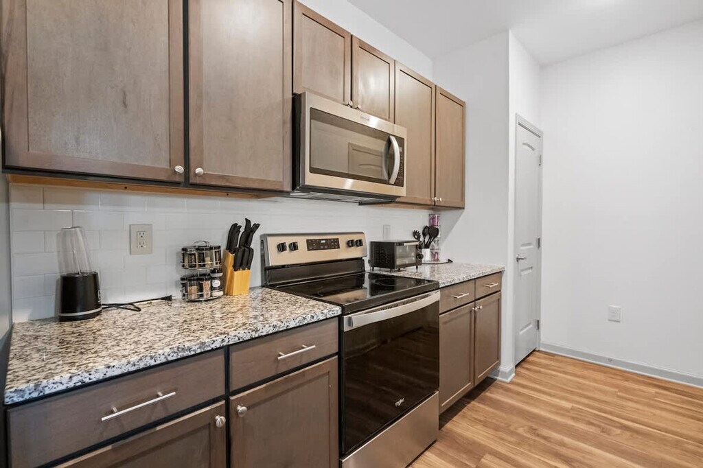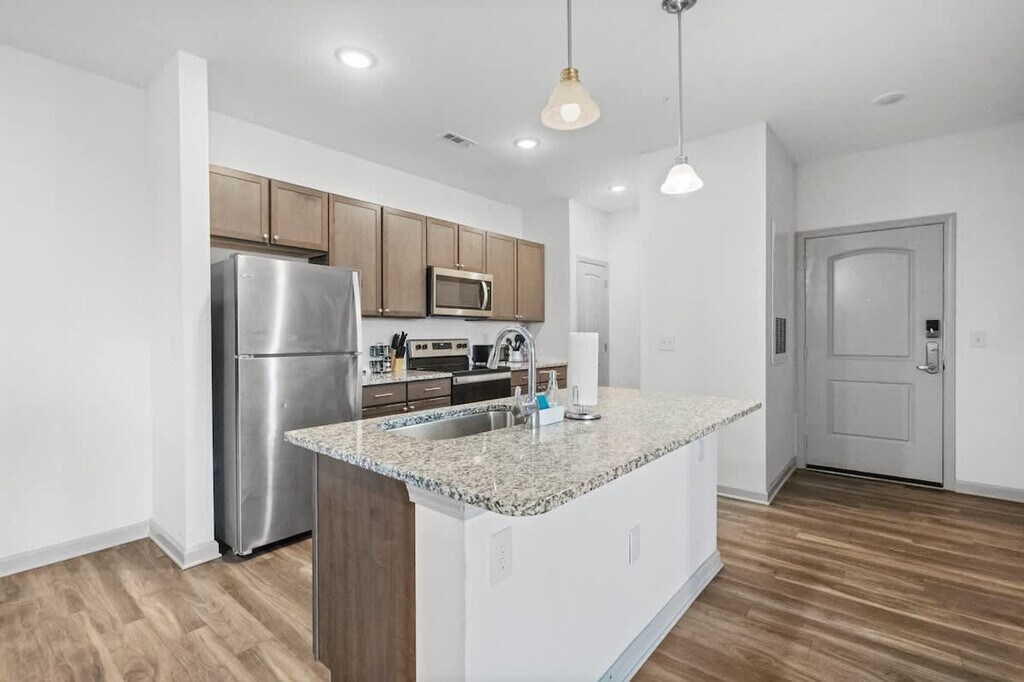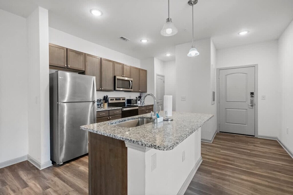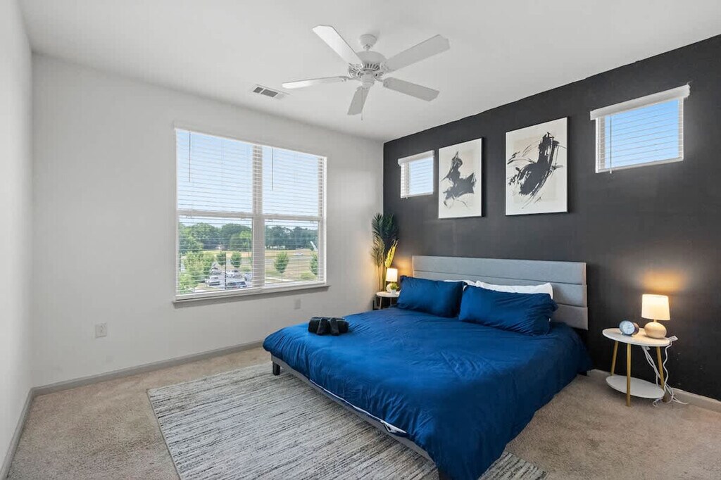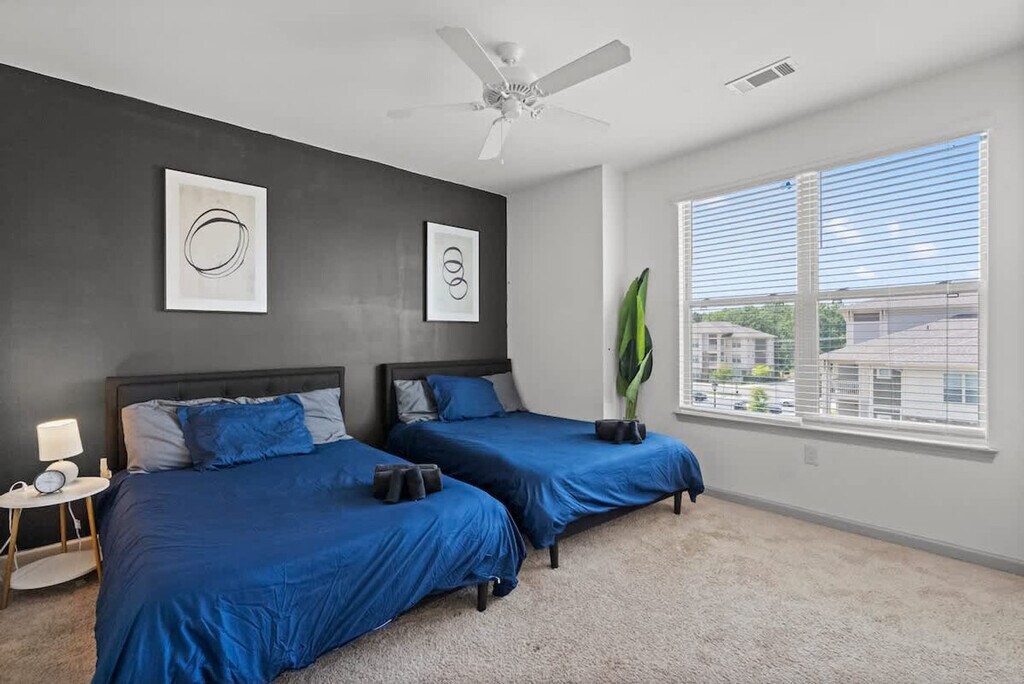 Stay in style in the eclectic city of Charlotte, home to the second largest banking center in the USA. This classy 1168-square-foot, 2-bedroom and 2-bathroom apartment features a king-size bed and two plush full-size beds for your comfort. Enjoy lightning-fast Wi-Fi, a separate workstation, a fully equipped kitchen, and other luxury amenities, specially designed for your long-term stays. Step out to a lively neighborhood, just 15 minutes from Uptown, close to restaurants, cafés, bars, and shops. Begin your day with a perfectly brewed cup of tea or instant coffee, decaf or regular, prepared just the way you like it from the convenient coffee station in your upscale kitchen. Whether you're here for business or leisure, this space is designed to provide the perfect balance of comfort and convenience. With vibrant restaurants just minutes away, you might find yourself exploring the culinary scene in Charlotte each night. After a long day, it’s reassuring to know that your well-equipped kitchen and elegant dining table are ready to provide a 5-star dining experience right at home. Whether you choose to venture out or stay in, this space serves as the perfect home base for work, relaxation, and entertainment. Free on-site parking is available on a first-come, first-served basis. Public transit and ride shares are also easily accessible, providing quick access to Uber, Lyft, and local transit. We welcome up to two pets per reservation, each weighing under 35 lbs, with a fee of $49 per pet for stays of 1–6 nights. Additional charges apply for longer stays, and a one-time fee applies for larger pets. Bringing undisclosed pets into the unit may result in a minimum $500 fine and cancellation of your stay without refund. Situated in a vibrant neighborhood, this property places you within minutes of top attractions, dining, and nightlife. Enjoy easy access to the NASCAR Hall of Fame, Discovery Place Science, Carowinds Amusement Park, Billy Graham Library, U.S. National Whitewater Center, Spectrum Center, SouthPark Mall, Bank of America Stadium, Camp North End, NoDa (North Davidson Arts District), Plaza Midwood, and Freedom Park. All these destinations are within a short drive, making it convenient to explore the best of Charlotte. Quiet hours are strictly enforced from 8 PM to 8 AM to ensure a peaceful stay for everyone. Smoking is strictly prohibited anywhere on the premises, including inside the unit and on balconies or patios. If a smoke detector is tampered with or triggered due to smoking, guests will be fined $2,500 and removed from the property immediately without refund. Unauthorized guests will result in a $500 fine per person, immediate removal from the property, and cancellation of the reservation without refund. Entry requires a smart lock and/or lockbox, and some properties may require downloading an app for Bluetooth access. Check-in instructions will be sent via email or message. Guests must be prepared to download the required app for access. The apartment is perfect for business travelers with high-speed Wi-Fi and a dedicated workstation featuring a standing desk, ideal for remote work. A laptop computer is not included. [SI]