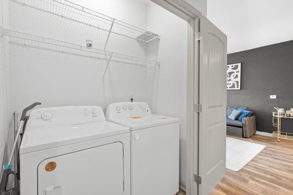 Stay in style in the eclectic city of Charlotte, home to the second largest banking center in the USA. This classy 1,168-square-foot 2-bedroom and 2-bathroom apartment features a king-size bed and two plush full-sized beds for your comfort. With lightning-fast Wi-Fi, a separate workstation, a fully equipped kitchen, and other luxury amenities, this apartment is specially designed for longer stays. Step out to a lively neighborhood, just 15 minutes from Uptown, close to restaurants, cafés, bars, and shops. Begin your day with a perfectly brewed cup of tea or coffee from the convenient coffee station in your upscale kitchen. Whether you're here for business or leisure, this space provides the perfect balance of comfort and convenience. With vibrant restaurants just minutes away, you might find yourself exploring the culinary scene in Charlotte each night. After a long day, your well-equipped kitchen and elegant dining table are ready to provide a 5-star dining experience right at home. This inviting open-concept living area is elegantly furnished to provide a blend of relaxation and functionality. Large windows flood the space with natural light, while modern décor and high-end finishes create a sophisticated yet comfortable atmosphere. The spacious living area is thoughtfully designed with plush seating, a 55” Smart 4K TV, and elegant décor. Enjoy fast Wi-Fi, perfect for streaming, remote work, or video calls, and a smart TV with streaming services like Netflix, Hulu, and HBO Max. The apartment also offers self check-in with a keyless smart lock, a dedicated work station with a standing desk, and an in-unit washer and dryer with provided detergent. Free on-site parking is available on a first-come, first-served basis. Public transit and ride shares are also available, offering quick access to Uber, Lyft, and local transit. Pets are welcome with a fee of $49 per pet for stays of 1–6 nights, with additional charges for longer stays. For pets over 35 lbs, a one-time $49 large pet fee applies for one pet, and $95 for two larger pets. Bringing undisclosed pets into the unit may result in a minimum $500 fine and cancellation of your stay without refund. Optional mid-stay cleaning is available for $175, which includes new linens, surface cleaning, and trash removal. Early check-in and late checkout are based on availability, with a fee of $35 for 1 hour early/late and $49 for 2 hours early/late. Situated in a vibrant neighborhood, this property places you within minutes of top attractions, dining, and nightlife. Enjoy easy access to the NASCAR Hall of Fame, Discovery Place Science, Carowinds Amusement Park, Billy Graham Library, U.S. National Whitewater Center, Spectrum Center, SouthPark Mall, Bank of America Stadium, Camp North End, NoDa (North Davidson Arts District), Plaza Midwood, and Freedom Park. All these attractions are within a short drive, making it convenient to explore the best of Charlotte. Quiet hours are strictly enforced from 8:00 PM to 8:00 AM to ensure a peaceful stay for everyone. Smoking is strictly prohibited anywhere on the premises, including inside the unit, on balconies or patios, and in shared or public spaces. If a smoke detector is tampered with, disabled, or triggered due to smoking, guests will be fined $2,500 and removed from the property immediately without refund. Unauthorized guests will result in a $500 fine per person, immediate removal from the property, and cancellation of the reservation without refund. The property is equipped with Minut noise monitoring devices and exterior security cameras. If noise levels exceed 80 decibels for more than 10 consecutive minutes, guests will be fined $2,500, removed from the property immediately, and their reservation will be canceled without refund. Self check-in is available with a smart lock or lockbox system, and some properties may require downloading an app for Bluetooth access. Check-in instructions will be sent via email or message. Guests must be prepared to download the required app for access. The apartment is perfect for business travelers with high-speed Wi-Fi, a quiet workspace, and proximity to business districts. The dedicated work station includes a standing desk, ideal for remote work. A laptop computer is not included. [SI]
