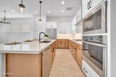 Property Id: 2373301 GORGEOUS BRAND NEW 3 bed, 2 bath with 2 car garage; split floor plan with chef's kitchen including stainless GE appliances - gas cooktop and refrigerator, 2 tone shaker cabinets, quartz tops and custom tile backsplash; two-toned paint and upgraded plank tile flooring/pad/carpet throughout; 10' ceilings and large energy efficient windows; 2x6 construction and extensive new home warranty.