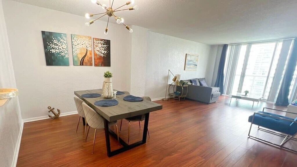 Stay in a spacious 1-bedroom apartment designed for comfort and functionality during your Miami getaway. Nestled on the iconic Collins Avenue, this home places you just steps from the beach and surrounded by parks, restaurants, and shops. Aventura Mall and Bal Harbour Shops are only a short drive away, with quick access to major highways connecting you to both Miami and Fort Lauderdale. Enjoy resort-style amenities including an outdoor swimming pool perfect for sunny Florida days and a fully equipped fitness center. Enjoy a comfortable and modern stay designed for both relaxation and convenience. This apartment offers plenty of room, thoughtful details, and everything you need to feel at home while enjoying Sunny Isles Beach. Relax on the private balcony with a beautiful view, unwind in the spacious living room with a sofa bed perfect for extra guests, and rest easy in the bedroom with two queen beds. The large, fully equipped kitchen is ideal for preparing your favorite meals, and high-speed internet ensures connectivity for work or entertainment. Pets are welcome with a fee of $25 per pet per night. Located on Collins Avenue in Sunny Isles Beach, one of the most sought-after areas in Miami, this apartment offers the perfect blend of relaxation and convenience. You'll be close to the beach, shops, and entertainment. Enjoy miles of sandy shoreline and turquoise waters just steps away, explore Heritage Park with its playgrounds and picnic areas, and visit Aventura Mall and Bal Harbour Shops for shopping and dining. Trendy art, culture, and shopping await in Wynwood and the Design District, accessible within 20–25 minutes by car. Downtown Miami and Brickell, with their business, nightlife, and top restaurants, are less than 30 minutes away. The apartment is non-smoking and parties are not allowed. Check-in and check-out times are flexible to accommodate your schedule. A laptop computer is not included. Includes high-speed internet ideal for work or entertainment. [SI]