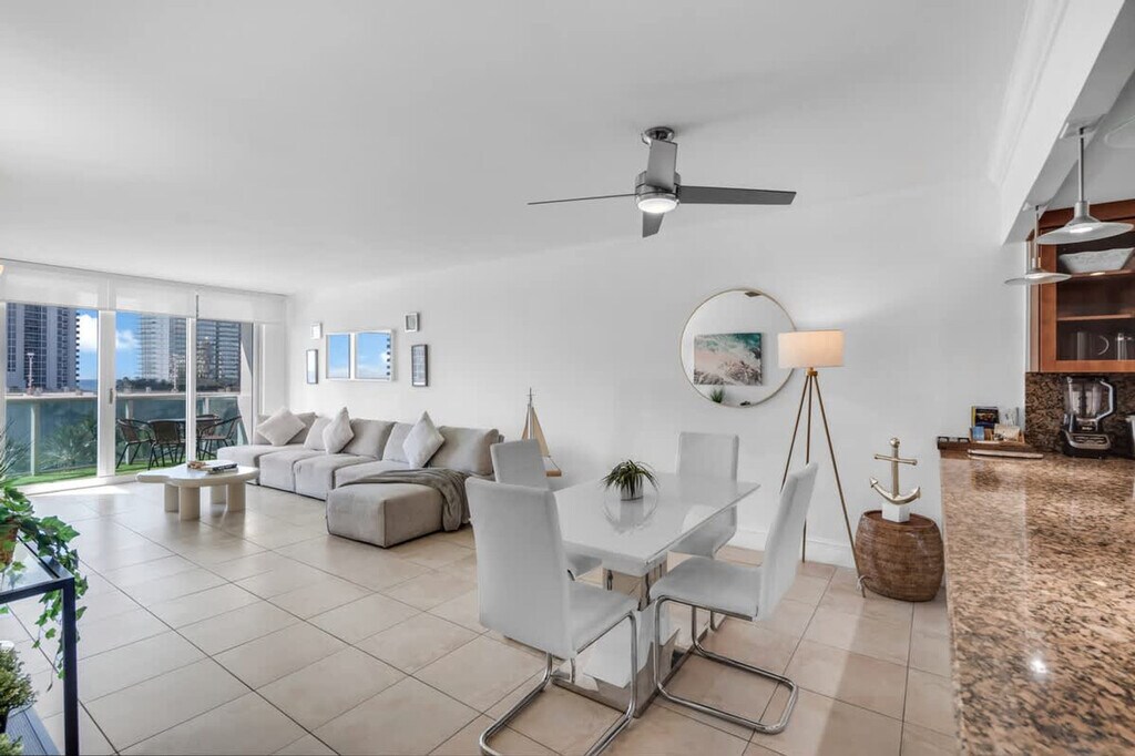Feel at home in this breathtaking 2-bedroom apartment in Sunny Isles Beach, offering 1000sqft² (91m²) of living space on the 7th floor. This apartment is furnished to an impeccable standard and features high-speed internet, a living room with an L-shaped sofa with a pull-out backrest that converts into a sleeping area, a coffee table, and a Smart-TV. Bedroom 1 has a queen bed and Smart-TV, while bedroom 2 has two queen beds, a closet, a dresser, and a Smart-TV. One free parking spot is included. Located in the heart of Sunny Isles Beach, this apartment is a 2-minute walk from the beach and a 5-minute drive from Aventura Mall. It's also a 15-minute drive to Fort Lauderdale-Hollywood International Airport. Enjoy easy access to restaurants, cafes, grocery stores, local shops, and nightlife while maintaining a peaceful, residential atmosphere. Miami and Fort Lauderdale are within a 30-minute drive, making day trips convenient. The heated pool is available for use. [SI]