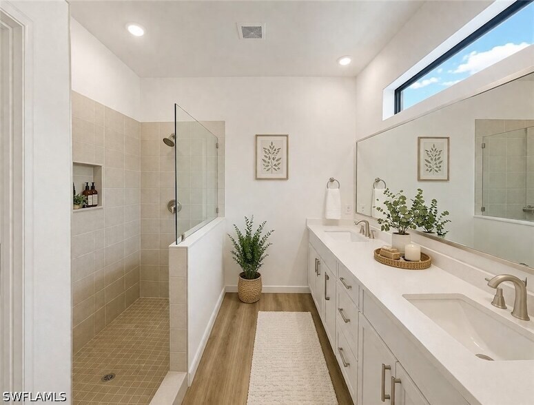 One or more photo(s) has been virtually staged, AI generated or rendered. Rare Venice Floor Plan in Verdana Village | 3 Bed + 3 Bath | Private Backyard Desirable Venice floor plan featuring 3 bedrooms and 3 full bathrooms, including two en-suite bedrooms plus a third bedroom with a nearby full hall bath ideal for flexible living, guests, or a home office. This lightly lived-in home offers ~1,849 sq ft with an open-concept layout, tile flooring in main living areas, and a 2-car garage. The kitchen features quartz countertops, stainless steel appliances, and a large island that flows seamlessly into the great room perfect for everyday living and entertaining. Enjoy a screened lanai and private backyard with no direct rear neighbors, creating a quiet and peaceful outdoor setting. Key Features: Two en-suite bedrooms + full hall bath Split floor plan with private owner's suite Walk-in closet + spa-style primary bath Hurricane protection + brick paver driveway Pets welcome Move-in ready Verdana Village Amenities:Resort-style pool & spa, indoor & outdoor pickleball and tennis, basketball, bocce, fitness center, on-site restaurant, cafe, craft beer lounge, dog park, playground, and more.