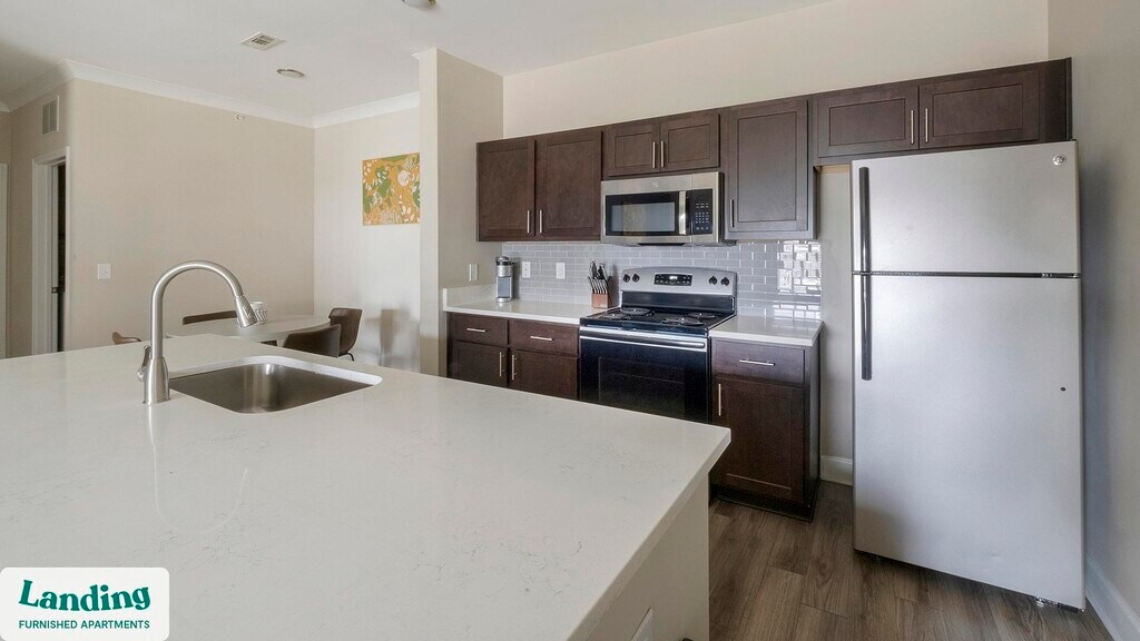 Landing offers flexible lease terms from weeks to months. Please always visit our website or contact us for the latest pricing & availability. Stay longer, save more: 6-Month Minimum base rent: starts at $1815/mo 12-Month Minimum base rent: starts at $1801/mo Landing offers flexible leases across a network of over 35,000 fully-furnished apartments throughout 375+ cities so you can rent on your terms, practically anywhere, and avoid the hassle of paying deposits or application fees. Visit to learn about all the benefits of a Landing membership, see our competitive up-to-date pricing, explore available apartments, take virtual tours, and make reservations online without jumping through traditional rental hoops. Landing's apartments at The Isaac are designed for comfortable, easy living, with the ability to stay as long as you like. Experience living with Landing Every apartment is outfitted with all the modern essentials including: custom-designed furnishings, a fully-equipped kitchen with deluxe stainless steel appliances, a gourmet coffee maker, premium linens, Smart TVs, and incredibly fast, reliable internet for working from home. When you live with Landing, you'll enjoy a hassle-free experience with the added benefit of 24/7 access to our dedicated member experience team. Some of the nitty-gritty: a background check and proof of income are required; we're completely smoke-free; bundled utility packages and pricing vary based on length of stay; pet-friendly options available; listed price reflects a 12-month minimum stay.