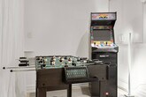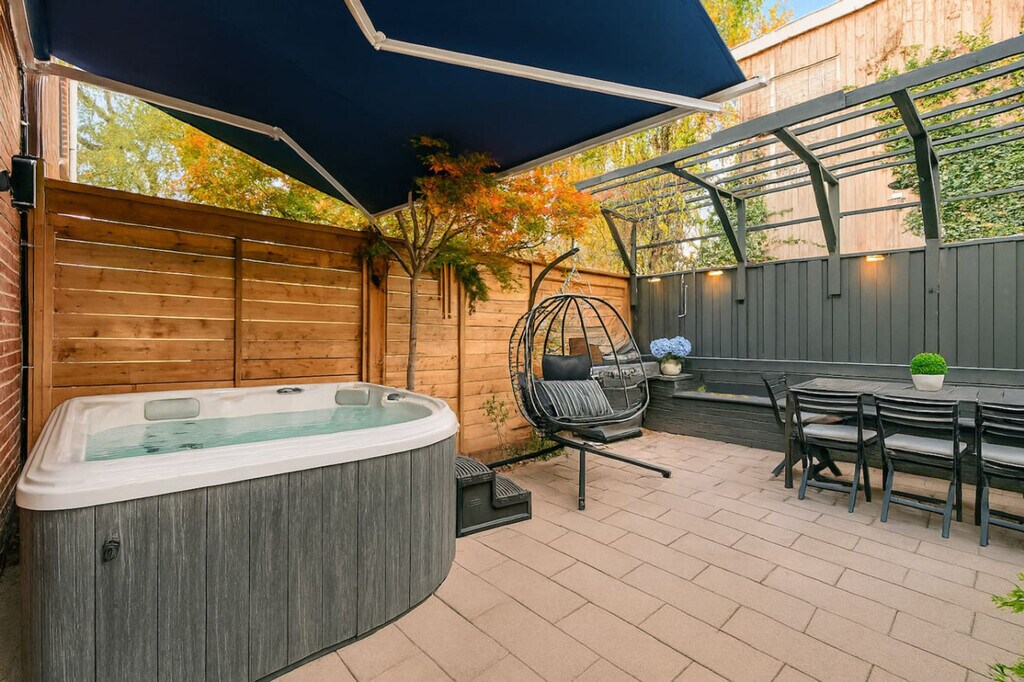 The advertised rate of C$8,440/month is the lowest available price, based on a 1 month(s) stay with a move-in date of April 12, 2026. Rates vary depending on the duration of stay, season, and other parameters. For exact pricing and additional pricing components, please visit our website and enter your desired move-in and move-out dates. The rate is applicable when billed upfront; it can be higher if billed in multiple payments. Feel at home in this spacious property spanning over 2000 sq. ft. with 3-bedrooms and 2.5 full bathrooms, offering ample space for your group to work, play, and stay in the city. This property features a relaxing hot tub, an indoor fireplace, an arcade, a foosball table, a poker set, a piano, and guitars. The kitchen is fully equipped with all essentials for your culinary needs, including a 6-person dining table, 4 high-top bar stools, a microwave, and a cuisineart coffee machine. The main living area boasts an 18-foot ceiling and a 65-inch 4K smart TV with Netflix and cable. There is also an on-site washer and dryer, outdoor seating, and a propane BBQ. Free parking is available for 2 large or 3 small cars, plus an EV charger. Smoking is strictly forbidden anywhere on the property, and failure to comply may result in a penalty up to $1000. No more than the stated number of guests in the reservation may stay overnight, unless agreed otherwise. Failure to report the accurate number of overnight guests may result in an immediate cancellation of your stay. Pets, parties, and illegal drugs of any kind are not allowed anywhere on the property. Late checkouts beyond the scheduled check-out time will incur fees. Bedroom 2 has a dedicated workspace. [SI]