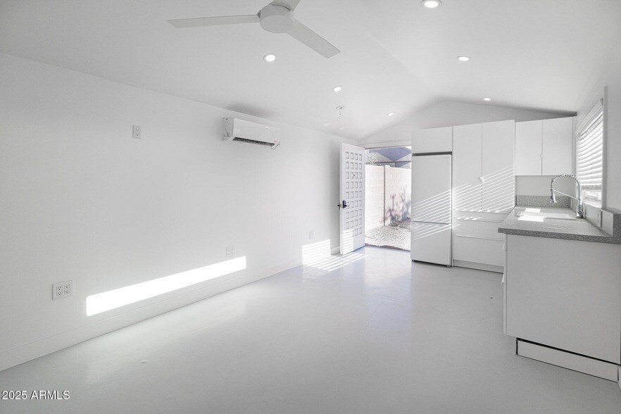 Private Casita in Villa Verde A Mini Home with Maximum LifestyleOpportunity is knocking at 1950 W Palm Ln #A, a charming and light-filled casita tucked into one of Phoenix's most culturally rich and centrally connected neighborhoods. With its own private entry, driveway, and yard, this standalone residence lives like a mini house perfect for those seeking privacy, functionality, and urban access in one smart package.Step into the spacious great room, where natural light pours in and the full kitchen offers quartz countertops, modern cabinetry, and a gas cooktop. The private bathroom, updated in 2022, features sleek tile and a waterfall shower head that delivers a spa-like experience mimicking the gentle rhythm of a warm downpour. Whether you're working from home, hosting guests, or simply enjoying quiet evenings, this casita offers flexibility and comfort in every corner.Located in Villa Verde, you're just minutes from Downtown Phoenix, the Arizona State Fairgrounds, and the lush 222-acre Encanto Park home to paddle boats, winding trails, and the whimsical Enchanted Island Amusement Park. Tree-lined streets and classic architecture evoke a sense of nostalgia, while proximity to I-10, Grand Avenue, and light rail access make commuting effortless.Dining and entertainment options abound, with local favorites like Gadzooks, Valentine, and Durant's steakhouse nearby. Art lovers will appreciate the Phoenix Art Museum and Heard Museum, while sports and concert fans are a short drive from Footprint Center and Chase Field. For everyday essentials and retail therapy, Park Central Mall and Roosevelt Row offer a vibrant mix of shopping, galleries, and nightlife.Educational access includes Phoenix College and nearby magnet schools, while healthcare needs are covered by Banner University Medical Center and St. Joseph's Hospital. Whether you're drawn to architectural charm, walkable living, or the cultural heartbeat of Central Phoenix, 1950 W Palm Ln #A delivers character, convenience, and community in one compact, private retreat.Note: This listing is for the casita only. The main home is available separately see MLS #6899961 and #6899976 for details.