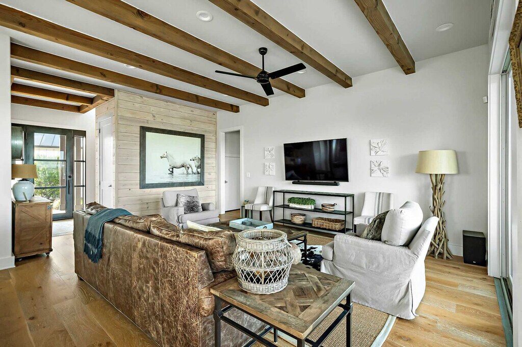 Nestled above Lake Travis, this luxury 4-bedroom retreat offers stunning views and elegant comfort. As the largest home at The Reserve, it features two living areas, a chef’s kitchen, and outdoor dining with a built-in grill. Sip coffee on the balcony or relax with a movie on one of two 65” TVs. With upscale finishes, spacious gathering areas, and parking for four, this is your perfect Hill Country escape ideal for entertaining, celebrating, or unwinding in style. Perched atop a scenic ridge, this stunning getaway offers panoramic views of Lake Travis and the Texas Hill Country. As the largest vacation rental at The Reserve and featured in Texas Lifestyle Magazine, it’s the perfect place to entertain, celebrate, and unwind in style. Part of the exclusive Farmhouse Collection, this elegant home features 4 bedrooms, a chef’s kitchen with Carrara marble accents, two cozy living areas, and a covered outdoor space complete with a built-in grill and alfresco dining area. Start your day with coffee on the upstairs covered balcony or wind down with a cocktail on the main patio outfitted with a 56” outdoor TV, dining table, and outdoor kitchen. Inside, enjoy the warm charm of wood floors, exposed beams, and natural light. The downstairs living room features a leather sofa, armchairs, and a 65” smart TV with soundbar, while the upstairs lounge offers plush recliners, a sofa, and another 65” smart TV for added relaxation. The kitchen is a culinary dream, boasting marble quartzite counters, a six-burner gas stove, island seating, and a rustic wood dining table, ideal for gathering with friends and family. Guests will also enjoy the convenience of a private garage for 2 vehicles and driveway parking for 2 more, along with high-speed Wi-Fi, cable, Netflix, and two sets of washers and dryers to make your stay as seamless as it is luxurious. Guests will also enjoy the convenience of a private garage for 2 vehicles and driveway parking for 2 more. Please note that all pool and water attractions, food and beverage areas and The Lodge are currently closed. Drought conditions may affect Lake Travis water levels may be lower than shown in listing photos. Refunds or cancellations cannot be offered based on water levels. The Reserve at Lake Travis is a private luxury community where lake life meets upscale comfort. Located just west of Austin along the sparkling south shore of Lake Travis, this exclusive retreat offers the perfect blend of tranquility, adventure, and refined living. Wake up to breathtaking views, spend your days out on the water, and wind down with a glass of wine under starry skies. With direct access to Lake Travis—a 64-mile stretch of clear, unrestricted water—you’re free to boat, swim, wakeboard, water ski, or cruise at your own pace. Even during the cooler months, the lake comes alive with sailboats gliding across calm waters. Off the lake, explore the best of Central Texas. Tee off at nearby championship golf courses, browse over 125 shops and restaurants at the Hill Country Galleria, or grab a bite at one of the area’s cozy, local diners. And when you're ready for some city energy, the vibrant music, food, and nightlife of downtown Austin are just a scenic 45-minute drive away. Whether you're here to reconnect with nature, seek adventure, or simply relax in style—The Reserve at Lake Travis is your perfect getaway. Smoking is not allowed on the premises, with a minimum smoking fee of $250. However, the total charge may be higher if the property's condition renders it temporarily unrentable. Early check-in and late check-out are possible, subject to availability and with an associated fee. A period of quiet hours spans from 10 pm to 7 am. No parties are allowed. Unauthorized events or parties are not allowed. Fireworks are not allowed. Please return the fishing rods, pickleball paddles and balls after use. Fees may apply. Please do not set the home's thermostat above 76 (heating) or below 68 (cooling). To avoid overloading the system, please adjust the thermostat by no more than 2 degrees per hour and keep the doors and windows closed as much as possible. If you encounter any issues, don’t hesitate to contact us. Texas is known for its bug inhabitants. Rest assured, we take proactive measures to manage this, and it shouldn't pose a problem during your stay. To help us keep them outside, please keep all windows and doors closed. We take proactive measures to manage this but if you are experiencing issues please feel free to use the bug spray underneath the sink. [SI]