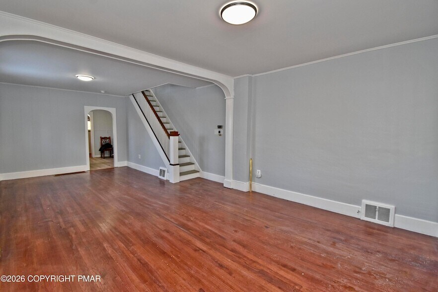 FRESHLY UPDATED 3bd Twin ideally located in the heart of East Stroudsburg, just a short walk to the High School & close to everything this vibrant area has to offer. Enjoy the convenience of being minutes from shopping, dining, parks, & downtown East Stroudsburg, w/ easy access to major routes for commuting. Inside, the home features nicely sized rooms filled w/ natural light, including a bright & inviting Living Room & Dining Room w/ hardwood floors that flow into the Kitchen w/ laminate flooring & a stainless steel gas stove. A convenient 1st floor laundry room adds to the everyday comfort. Upstairs, 3 comfortable bedrooms & a REMODELED full bath. The FINISHED WALK-UP ATTIC offers flexible bonus space, perfect for a cozy retreat, home office, or additional storage, plus the full basement for more storage. Go outside to a COVERED DECK overlooking a flat backyard or the covered front porch, ideal for relaxing at the end of the day. Off-street parking, natural gas heat, & immediate occupancy. No pets allowed!