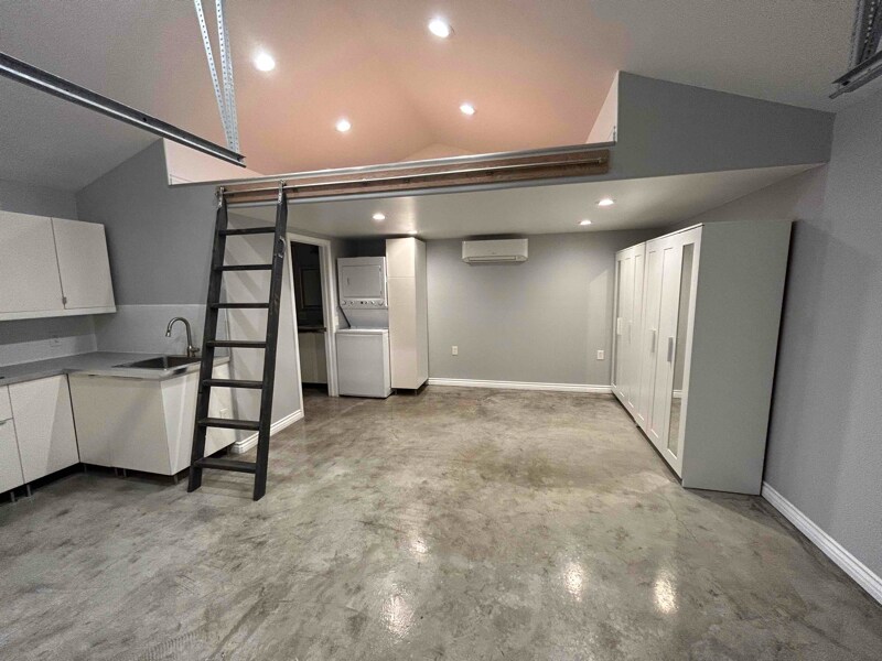 Property Id: 1312391 Tactfully remodeled, stand alone, studio apartment, with separate entrance and exit from the main property for ideal privacy. Enjoy the vaulted ceilings and open floor plan of 400 sqft of living space, with a large outdoor area for your open air retreat, or parking. Polished concrete floors throughout, brand new A/C unit, full kitchen (newer appliances) and in unit washer and dryer. Loft area (8'x11.5') with brand new flooring can be used as a sleeping area freeing up the main floor. Premium garage door can be rolled up allowing for a cool coastal breeze into the space and enabling easy access in and out (for moving day). Whole house fan mounted at the peak of the vaulted ceilings enables a complete refresh of the air in the space in under two minutes. Thoughtful upgrades throughout, to include under cabinet LED lighting in the kitchen and a whisper quiet through wall fan in the bathroom that turns on once a humidity threshold is reached.