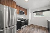 Property Id: 2093583 Price of $2,579 is based off a TWO month $6,190 concession (applied upfront) factored into the monthly base rent of $3,095 (THREE THOUSAND AND NINETY-FIVE DOLLARS) to show savings. Carefully restored & designed by a renowned LA designer, these 1960s modern luxury rental homes feature keyless entry door locks to spacious three-bedroom floor plans with newly renovated kitchen and bathrooms. The kitchen boasts sparkling white stone quartz countertops w/ brand new self-closing cabinetry & high-end stainless-steel refrigerators w/ matching gas cooktop with oven & microwave. iRing doorbells w/ a smart home video security camera are also included as well as a stackable washer & dryer. Bathrooms feature porcelain tiled bath tubs & glass shower doors. Each rental home also includes central A/C cooling & heating with recessed lights with luxury style cellular shade window blinds & distressed wood plank floors.