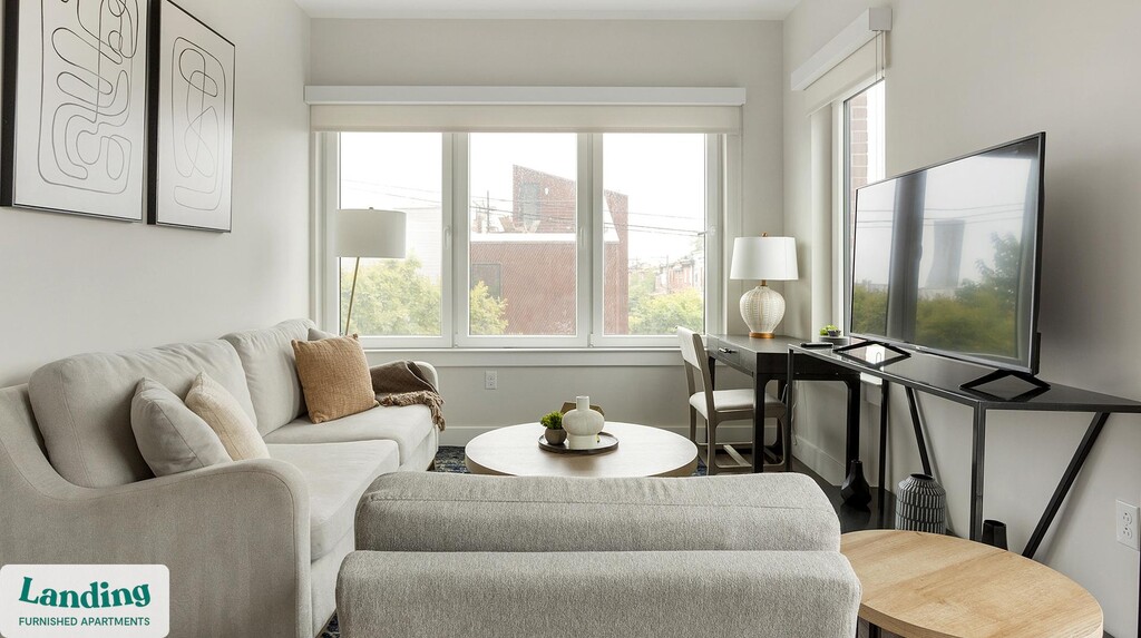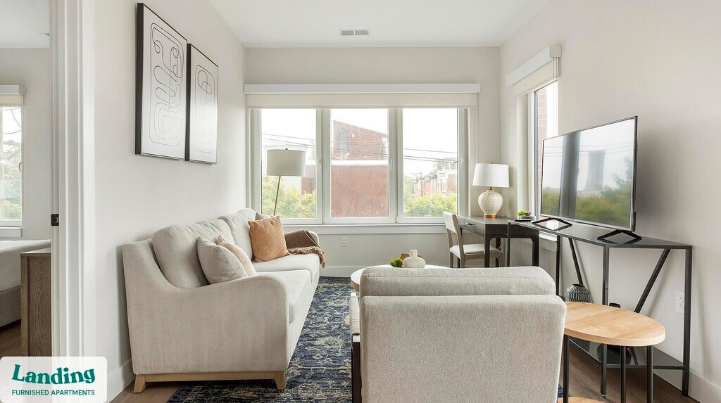 Landing offers flexible lease terms from weeks to months. Please always visit our website or contact us for the latest pricing & availability. Stay longer, save more: 6-Month Minimum base rent: starts at $1930/mo 12-Month Minimum base rent: starts at $2141/mo Landing offers flexible leases across a network of over 35,000 fully-furnished apartments throughout 375+ cities so you can rent on your terms, practically anywhere, and avoid the hassle of paying deposits or application fees. Visit to learn about all the benefits of a Landing membership, see our competitive up-to-date pricing, explore available apartments, take virtual tours, and make reservations online without jumping through traditional rental hoops. Landing's apartments at Hagert and York are designed for comfortable, easy living, with the ability to stay as long as you like. Experience living with Landing Every apartment is outfitted with all the modern essentials including: custom-designed furnishings, a fully-equipped kitchen with deluxe stainless steel appliances, a gourmet coffee maker, premium linens, Smart TVs, and incredibly fast, reliable internet for working from home. When you live with Landing, you'll enjoy a hassle-free experience with the added benefit of 24/7 access to our dedicated member experience team. Some of the nitty-gritty: a background check and proof of income are required; we're completely smoke-free; bundled utility packages and pricing vary based on length of stay; pet-friendly options available; listed price reflects a 12-month minimum stay.