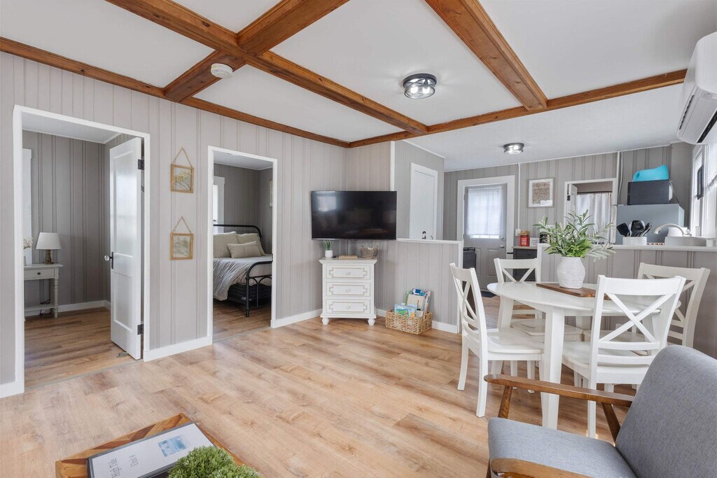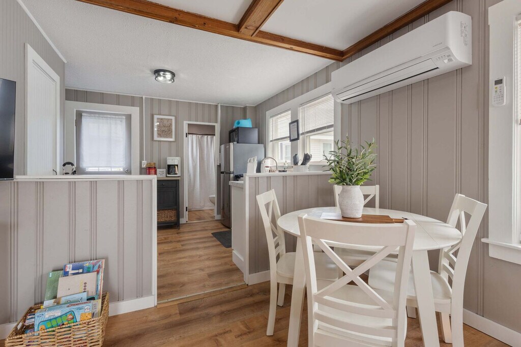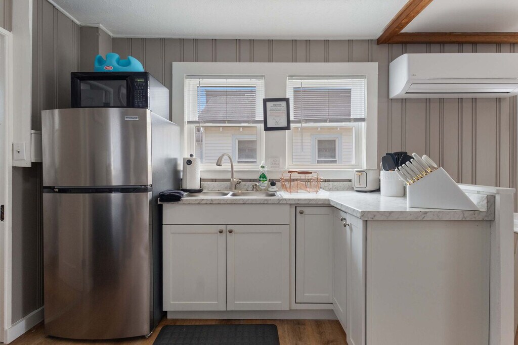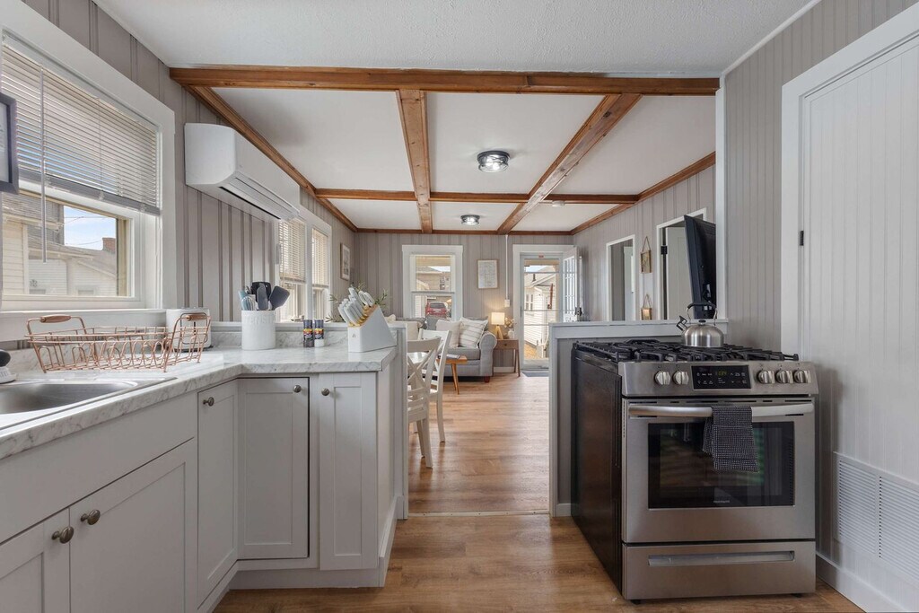 Welcome to Clam Cove, a centrally located private cottage in downtown Hampton Beach, just one block from the ocean. Situated near the main boardwalk, this charming home offers easy access to shops, beaches, parks, restaurants, and entertainment. The cottage features two bedrooms, two beds, one bathroom, a full kitchen, and a private porch, providing a cozy retreat where you can feel at home. This private cottage is less than 500 feet from the beach and includes two bedrooms, two beds, one bathroom, and a full kitchen. Enjoy the comfort and convenience of your own private porch, perfect for relaxing and soaking in the seaside atmosphere. Clam Cove offers parking for two normal or smaller-sized vehicles in your own lot right outside the cottage. For additional vehicles or larger ones, alternative parking is available in paid parking lots around the boardwalk or at the Hampton Park & Ride, which allows free overnight parking. Clam Cove is located on the north side of the Hampton Beach Boardwalk, less than 400 feet from Ocean Blvd. Here, you'll find the main boardwalk with everything Hampton has to offer, including the ocean directly across the street. The area is walkable, with easy access to the beach, restaurants, shopping, and more. There are a total of five cottages that share a parking lot, all available to rent alone or together for large groups. Quiet time is encouraged after 9pm to ensure all guests enjoy their time on the seacoast. Guests should not leave the apartment in a state that requires excessive cleaning beyond standard cleaning fees. Trash pickup is on Monday and Thursday, and guests should use designated bins. Any damage beyond normal wear and tear should be reported and resolved with the host. Disruptive gatherings are prohibited, and no parties are allowed. Please lock the doors when not home and upon departure.