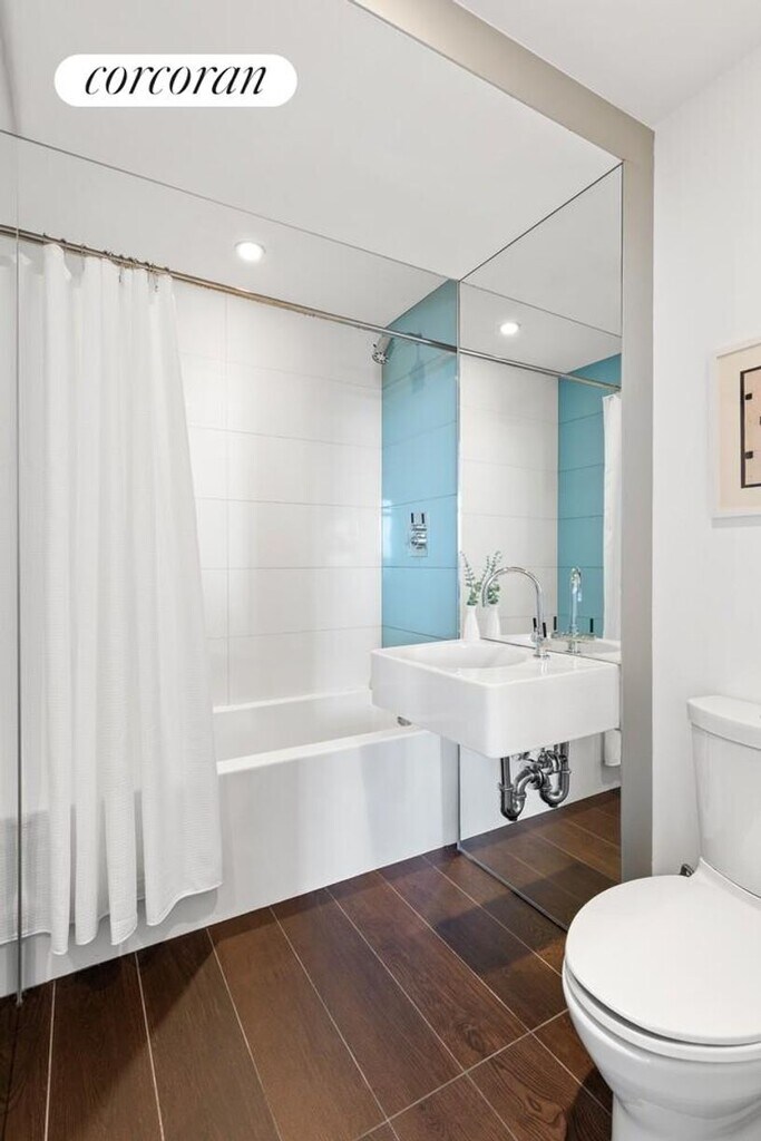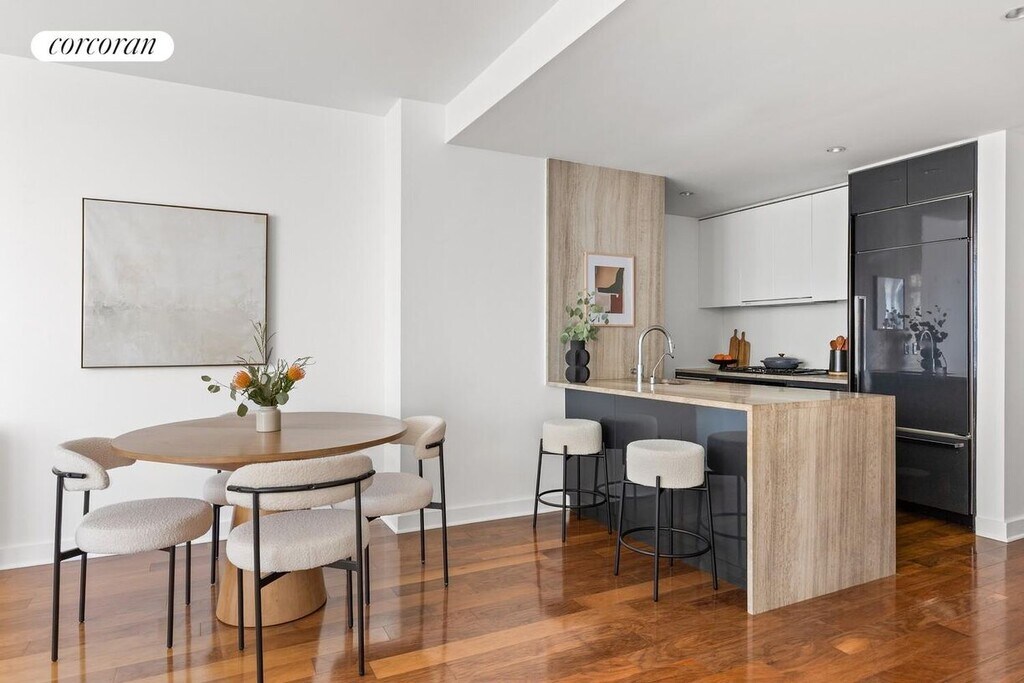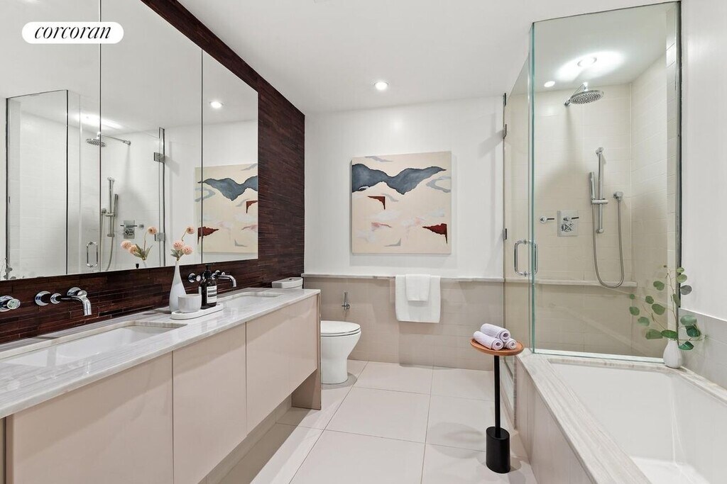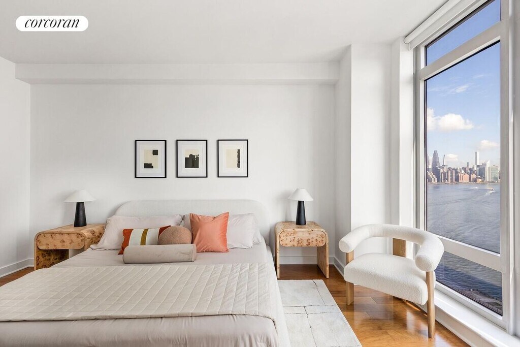Set directly on the Williamsburg waterfront, this expansive 1,234 SF residence at 2 Northside Piers offers sweeping, postcard-worthy views of the East River, Midtown Manhattan, and the Brooklyn skyline-all enjoyed from every room of the home. The layout is both generous and highly functional, featuring a spacious living room with a dedicated dining area, ideal for entertaining or working from home with a view. Custom windows in the living room and primary bedroom were thoughtfully added to enhance sightlines and flood the space with natural light throughout the day. The open chef's kitchen is outfitted with a premium Sub-Zero and Bosch appliance package, Italian marble countertops, and ample storage-perfectly suited for both daily living and hosting. The primary bedroom easily accommodates a king-sized bed and is complemented by an exceptionally large walk-in closet measuring approximately 9' x 7'3", offering storage rarely found in a rental. The spa-like five-fixture primary bathroom features a double-sink marble vanity, deep soaking tub, and a glass-enclosed rain shower with Lefroy Brooks fixtures. Additional highlights include excellent overall closet space, a walk-in pantry/closet off the living area, and a full-size, vented washer and dryer in-unit. Residents of 2 Northside Piers enjoy one of Brooklyn's premier full-service condominium experiences, including a 24-hour concierge, indoor swimming pool, hot tub, sauna, Manhattan-facing fitness center, resident lounge, landscaped outdoor deck, playroom, and bike storage. Perfectly positioned along the coveted North Williamsburg waterfront, the building sits beside the East River Ferry, waterfront esplanade, and nearby green spaces such as Domino Park and Bushwick Inlet Park. Trader Joe's, the Apple Store, and an array of acclaimed cafés, restaurants, and boutiques are moments away, with seamless access to the L train and ferry for an easy Manhattan commute..