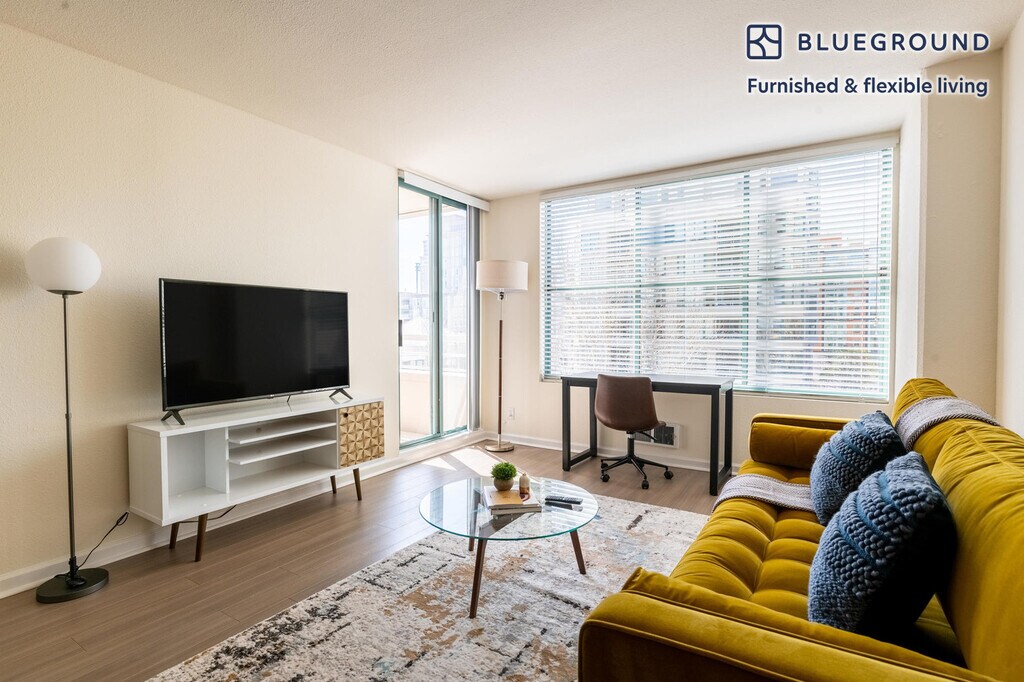 Discover the best of San Francisco, with this one bedroom apartment in South Beach. It’ll be easy to simply show up and start living in this furnished apartment with its fully equipped kitchen, living room, and our dedicated, on-the-ground support. (ID #SFO1661) The advertised rate of $5,060/month is the lowest available price, based on a 11 month(s) and 29 day(s) stay with a move-in date of February 10, 2026. Rates vary depending on the duration of stay, season, and other parameters. For exact pricing and additional pricing components, please visit our website and enter your desired move-in and move-out dates. The rate is applicable when billed upfront; it can be higher if billed in multiple payments. Brokers are welcome to reach out. Were you looking for an unfurnished lease? Try Blueground instead and upgrade from unfurnished to furnished living: - Furnished at rates comparable to unfurnished - No setup or furniture costs - save thousands - Move-in ready - save time, just bring your suitcase Designed with you in mind Gorgeous furniture, fully equipped kitchen, smart TV, and a premium wireless speaker are just a few of the amenities you’ll find inside this one bedroom apartment. Ideally located in San Francisco, you’ll find a lot to love outside as well. When you’re ready to relax, you’ll be happy to discover every Blueground bedroom comes with superior quality mattresses, luxury linens, and cozy towels. We handle everything so you can simply show up and start living. This apartment also offers in-floor laundry. Sleeping arrangements Queen Bed, 63in/160cm Amenities Building amenities unique to this one bedroom apartment include an on-site: - BBQ Area - Doorman - Dryer of floor - Elevator - Game room - Swimming pool - Washing machine on floor - Parking - Pets allowed - Sauna - Tennis court Arrival and ongoing support The entire apartment is yours to enjoy! Throughout your stay, you’ll have access to our Client Experience team through the Blueground App. You can schedule additional cleanings, submit maintenance requests, and view our neighborhood recommendations with just a few taps. We’ll share all details upon confirmation of your stay. Ideally Located This furnished rental is located in San Francisco’s South Beach. One of the newest districts in the city, it is ideal for fitness junkies and those who love an active lifestyle. There are several paved pathways perfect for running, biking and skating. The SF Giants park is located here, so heading to a baseball game on the weekends is a breeze. Trendy restaurants and chic cafes can be found all over. Offering picturesque views of the bay, this once dilapidated waterfront area has been transformed. From here, the Ferry Building is only 10 minutes away by public transit. Other things to note Building amenities may have an extra cost. This Blueground apartment has flexible lease options, allowing you to book it for one month, a year, or more. Pets are welcome, though weight limits and breed restrictions apply and may incur fees. Parking is offered based on availability and is subject to a fee. We take great pride in ensuring every photo displayed is shot in our own units with our actual furnishings. That said, we regularly refresh our decor and furniture arrangement, which may differ from what’s pictured. [SI]