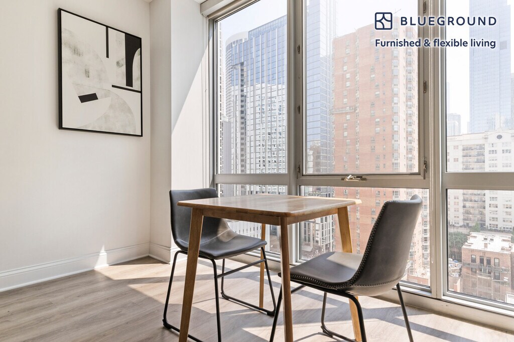 Show up and start living from day one in Chicago with this cozy one bedroom Blueground apartment. You’ll love coming home to this thoughtfully furnished, beautifully designed, and fully equipped Rush & Division home. (ID #CHI1285) The advertised rate of $2,900/month is the lowest available price, based on a 1 month(s) and 10 day(s) stay with a move-in date of January 16, 2026. If you’re looking for a 1-year stay, the rate is $3,880/month. Rates vary depending on the duration of stay, season, and other parameters. For exact pricing and additional pricing components, please visit our website and enter your desired move-in and move-out dates. The rate is applicable when billed upfront; it can be higher if billed in multiple payments. Brokers are welcome to reach out. Were you looking for an unfurnished lease? Try Blueground instead and upgrade from unfurnished to furnished living: - Furnished at rates comparable to unfurnished - No setup or furniture costs - save thousands - Move-in ready - save time, just bring your suitcase Designed with you in mind Gorgeous furniture, fully equipped kitchen, smart TV, and a premium wireless speaker are just a few of the amenities you’ll find inside this one bedroom apartment. Ideally located in Chicago, you’ll find a lot to love outside as well. When you’re ready to relax, you’ll be happy to discover every Blueground bedroom comes with superior quality mattresses, luxury linens, and cozy towels. We handle everything so you can simply show up and start living. This apartment also offers in-apartment laundry. Sleeping arrangements Queen Bed, 63in/160cm Amenities Building amenities unique to this one bedroom apartment include an on-site: - Dryer - Elevator - Washing machine - Parking - Pets allowed Arrival and ongoing support The entire apartment is yours to enjoy! Throughout your stay, you’ll have access to our Client Experience team through the Blueground App. You can schedule additional cleanings, submit maintenance requests, and view our neighborhood recommendations with just a few taps. We’ll share all details upon confirmation of your stay. Other things to note This Blueground apartment has flexible lease options, allowing you to book it for one month, a year, or more. Pets are welcome, though weight limits and breed restrictions apply and may incur fees. Parking is offered based on availability and is subject to a fee. We take great pride in ensuring every photo displayed is shot in our own units with our actual furnishings. That said, we regularly refresh our decor and furniture arrangement, which may differ from what’s pictured. Also note - This apartment's central location means it can be noisy at times - This apartment is located on a busy street - The apartment is in a busy location, so it will be noisy when your windows are open [SI]