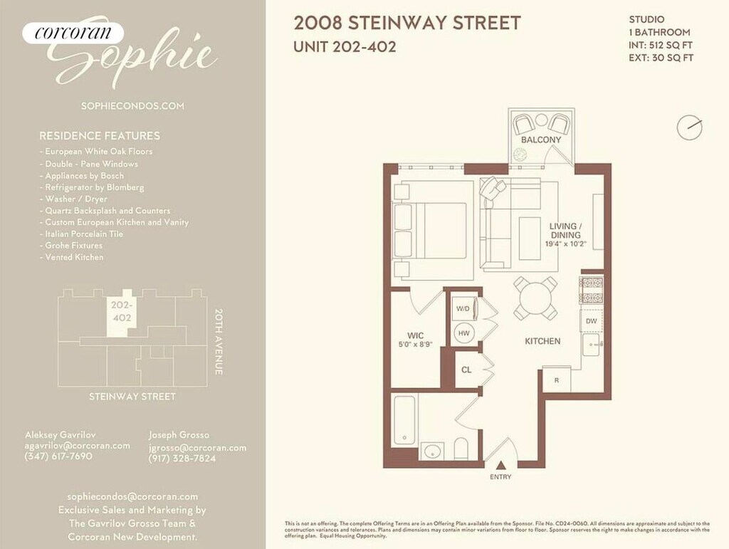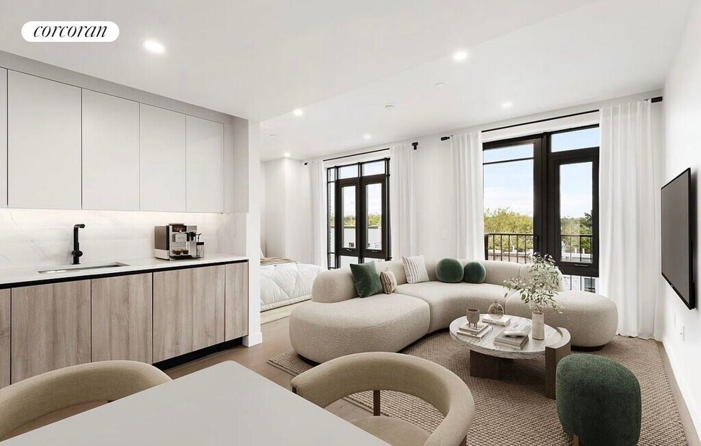 This elegantly designed 512 square foot studio condominium residence offers a private balcony and western exposures. This stunning unit features floor-to-ceiling oversized windows, wide-plank white oak flooring throughout, recessed lighting, high ceilings above 8', and an in-unit washer and dryer.Each studio residence also includes a custom closet system featuring custom European cabinetry, quartz waterfall countertops and backsplashes, Grohe fixtures, and premium stainless-steel Bosch appliances, including a Blomberg refrigerator that opens perfectly into a gracious living, dining, and sleeping area saturated with natural light and offering a private balcony. The bathroom is designed for ultimate relaxation with sophisticated elements including European porcelain tile, custom vanities, chic lighting, and premium Grohe fixtures.Sophie Condominium is a collection of 24 newly constructed condominiums. Curated amenities include a landscaped roof deck with skyline views, rear yard with manicured plantings and benches, fitness center, bike storage, and a virtual doorman. Experience the benefits of clean energy - installed solar panels.This is more than a studio-it's an elevated lifestyle.To move in 1st month's rent and 1 month deposit. Application fee $20 for credit check.