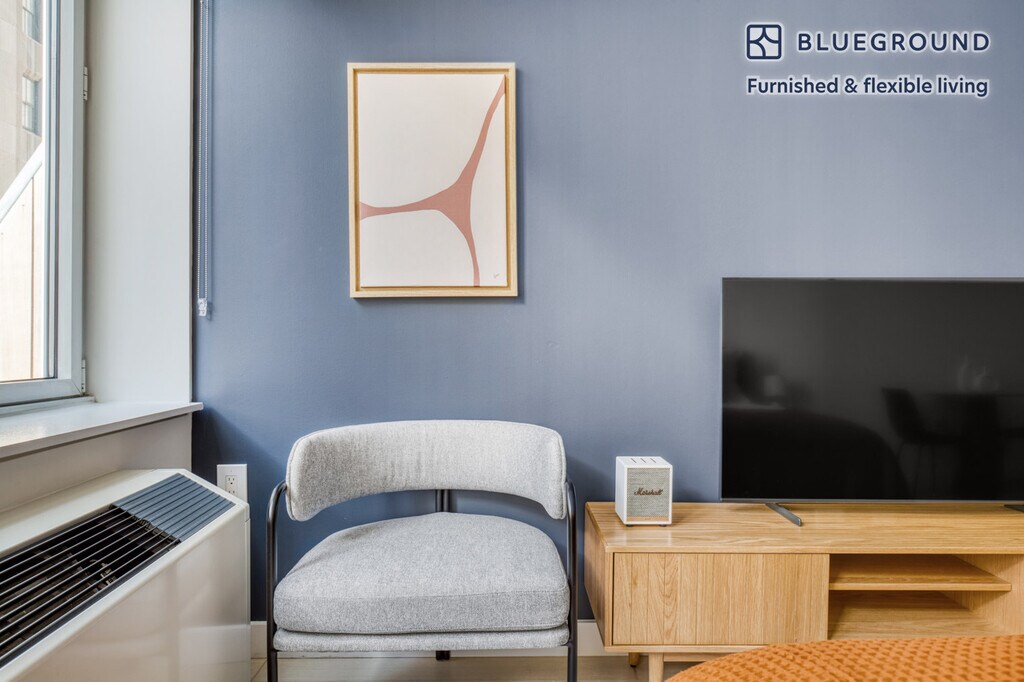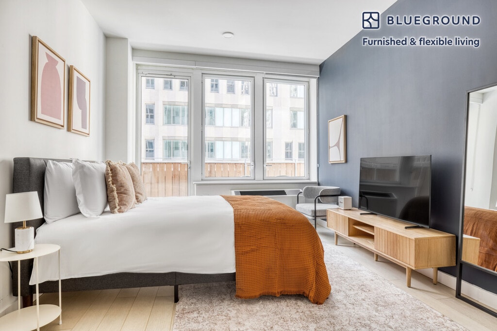 Discover the best of New York, with this studio apartment in Financial District. It’ll be easy to simply show up and start living in this furnished apartment with its fully equipped kitchen, living room, and our dedicated, on-the-ground support. (ID #NYC982) The advertised rate of $4,080/month is the lowest available price, based on a 12 month(s) stay with a move-in date of July 1, 2026. Rates vary depending on the duration of stay, season, and other parameters. For exact pricing and additional pricing components, please visit our website and enter your desired move-in and move-out dates. The rate is applicable when billed upfront; it can be higher if billed in multiple payments. Brokers are welcome to reach out. Were you looking for an unfurnished lease? Try Blueground instead and upgrade from unfurnished to furnished living: - Furnished at rates comparable to unfurnished - No setup or furniture costs - save thousands - Move-in ready - save time, just bring your suitcase Designed with you in mind Gorgeous furniture, fully equipped kitchen, smart TV, and a premium wireless speaker are just a few of the amenities you’ll find inside this studio apartment. Ideally located in New York, you’ll find a lot to love outside as well. When you’re ready to relax, you’ll be happy to discover every Blueground bedroom comes with superior quality mattresses, luxury linens, and cozy towels. We handle everything so you can simply show up and start living. This apartment also offers in-apartment laundry. Sleeping arrangements Queen Bed, 63in/160cm Amenities Building amenities unique to this studio apartment include an on-site: - Doorman - Dryer - Elevator - Game room - Washing machine - Lounge - Pets allowed - Playroom Arrival and ongoing support The entire apartment is yours to enjoy! Throughout your stay, you’ll have access to our Client Experience team through the Blueground App. You can schedule additional cleanings, submit maintenance requests, and view our neighborhood recommendations with just a few taps. We’ll share all details upon confirmation of your stay. Ideally Located This furnished apartment is located in the Financial District, also known as FiDi. Home to Wall Street, One World Trade Center, the South Street Seaport, and Bowling Green it is a constant hub of activity. During the week the sidewalk is always bustling and the restaurants are filled with professionals. The glittering skyscrapers and well-known landmarks make this one of the city’s most recognizable and historic neighborhoods. By subway, Times Square is about 20 minutes away. Other things to note Building amenities may have an extra cost. This Blueground apartment has flexible lease options, allowing you to book it for one month, a year, or more. Pets are welcome, though weight limits and breed restrictions apply and may incur fees. Brokes CYOF. We take great pride in ensuring every photo displayed is shot in our own units with our actual furnishings. That said, we regularly refresh our decor and furniture arrangement, which may differ from what’s pictured.