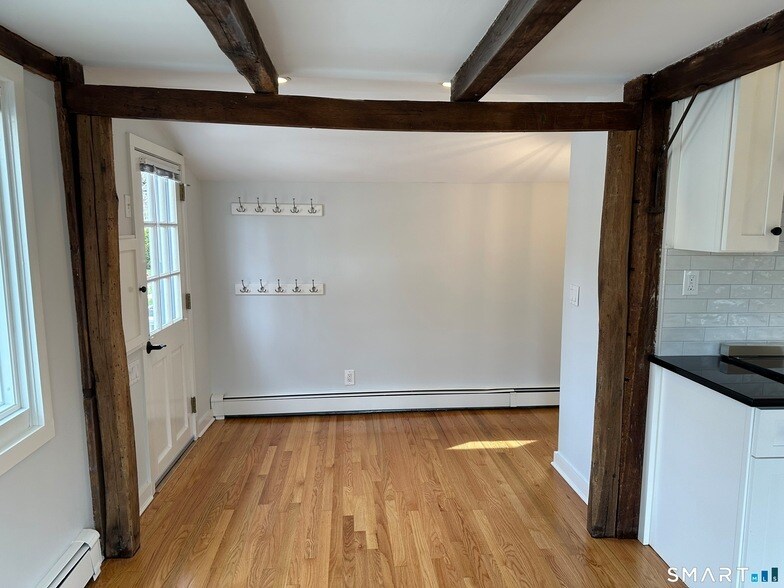 Tiny House Living in Weston! Welcome to 22 Cannondale Rd - an adorable updated vintage studio cottage on grounds with historic antique home in convenient Cannondale neighborhood. Oozing with charm - this tiny house has wood burning stove, antique beams, newly refinished hardwood floors, new windows, new kitchen with granite counters, custom cabinets and new appliances, new washer/dryer combo, vaulted ceiling, storage loft with removable library ladder, and is freshly painted. Bright and sunny with custom blinds offering views of neighboring woodlands and large grassy area in the back for tenants enjoyment. Front deck (14 x 15) shaded by beautiful dogwood offers lots of privacy. Landlord takes care of snow removal, outdoor maintenance, and trash removal. Good credit a must!