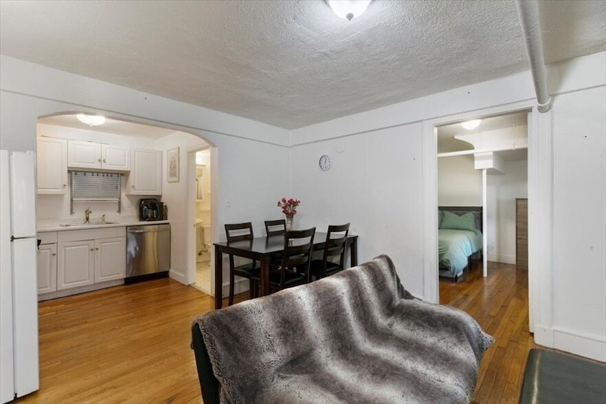 Located on a tree-lined street in the heart of Washington Square is a 1.5-bedroom, 1-bathroom ground-level condominium. This sunny, bright condo features hardwood floors and a recently renovated kitchen with new appliances. This property is very unique it has private entry to your spacious condo. It also has a private laundry room deeded to the unit and a huge bonus private stage room next to the unit. The condo fee is low and includes Heat, hot water, gas, and master insurance. This property is near so many local parks, restaurants, grocery stores, and Star Market. This location is a commuter's dream, nestled between the C and D trains with easy access to the Highway! This is a gem you don t want to miss!