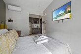 A sleek and stylish studio flat located in Middletown, New York, offering the perfect blend of comfort and modern design. Ideal for solo travelers or couples, this spacious retreat provides a peaceful escape from the hustle of Manhattan. Stay connected with free Wi-Fi, allowing you to stream your favorite shows or get some work done while enjoying the relaxed atmosphere. As you step into the studio, you'll be greeted by a compact yet functional kitchen, complete with all the essentials you need to prepare your favorite meals. Whether you're a culinary enthusiast or simply prefer the convenience of cooking your own meals, this kitchen will meet your needs with its modern appliances and ample storage space. Adjacent to the kitchen, you'll find a tastefully designed bathroom, featuring contemporary fixtures and a refreshing ambiance. Freshen up and rejuvenate in the well-maintained bathroom, equipped with all the necessary amenities and plush towels. Continuing through the studio, you'll discover the inviting bed area. Thoughtfully arranged to create a sense of privacy and relaxation, this space feels like a separate room, allowing you to unwind and recharge after a long day of exploring Middletown. The highlight of the bed area is the luxurious king-size bed, adorned with high-quality linens and plush pillows, ensuring a restful night's sleep. We have 18 parking spaces available for our guests. However, parking spaces are limited and are allocated on a first-come, first-served basis. We cannot guarantee or reserve a parking spot for you in advance. If you arrive and do not see any parking space, let us know so we can double-check and assist you. Immerse yourself in the vibrant culture and entertainment scene of Orange County, with a diverse array of attractions just moments away. Explore the glamour of the Paramount Theatre, enjoy the excitement at the Orange County Fair, and rest easy knowing that Garnet Health Medical Center is nearby. Discover the beauty of the Orange Heritage Trail and Bear Mountain, or enjoy craft beers at Clemson Bros. Brewery. Dive into history at the United States Military Academy at West Point, and savor farm-to-table cuisine at Oak & Reed. Shop at Woodbury Common Premium Outlets and the Galleria at Crystal Run, and let your imagination run wild at LEGOLAND New York Resort. Stewart Airport offers convenient travel access, while SUNY Orange College and Touro College provide educational opportunities. Your Orange County adventure begins here. Book your stay and experience the best that this vibrant destination has to offer. [SI]