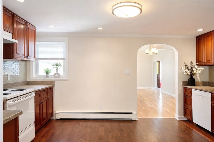Welcome to this 2 bedroom, 1.5 bath duplex, conveniently located near all Quincy Center has to offer! Enter into a spacious living area, drenched in natural sunlight, and followed by an open-concept formal dining room with gleaming hardwood floors and recessed lights. The updated eat-in kitchen is equipped with granite countertops and an abundance of cabinet space. A large sliding door that leads into a heated sunroom in the rear completes the main floor beautifully! In the 2nd level, you will find two similarly sized bedrooms, a full bath and plenty of storage in the attic. While this duplex is set on a quiet, tree lined street with little traffic, it is also conveniently located: Minutes to the highway (93/3A), walking distance to Quincy Center MBTA Station, bus route, and shops (Star Market, TJ Max, Walgreens, BJ, Home Depot, Faxon Park and all of the Hancock Street shops). 1 Off Street Parking Space. No basement access, basement is exclusive to the other side. Available now!