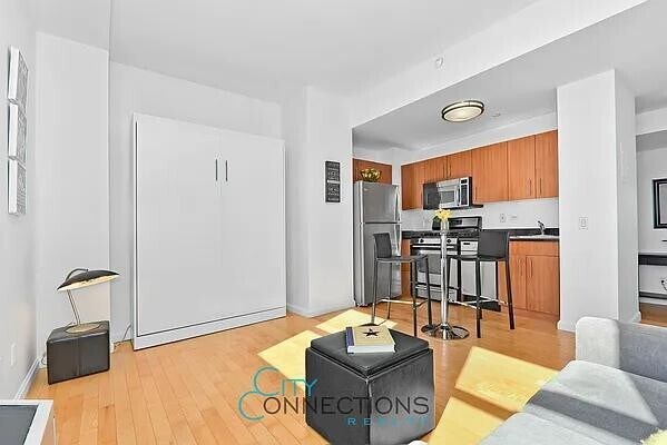 The Downtown Athletic Club Building at 20 West Street, New York, NY 10004, is a distinguished example of Art Deco architecture, a style characterized by its geometric shapes, clean lines, and ornamental details. Designed by Starrett & Van Vleck, an architectural firm renowned for its contributions to New York Citys skyline, the building was completed in 1930 and originally served as a private club for the affluent businessperson. The design embodies the elegance and modernity of the Art Deco movement, with intricate facade details and a sleek, towering profile that contributes to its iconic status.The Downtown Athletic Club Building has been recognized for its historical and architectural significance. Its addition to the National Register of Historic Places in 2005 underscores its importance in the architectural heritage of New York City.The building boasts a range of amenities designed to cater to the needs of its residents. These include a fitness center, yoga studios, massage room, and steam room. The over 12,000 sq. ft. of amenities space also includes a residents lounge withWIFI, a rooftop terrace offering an unbelievable panoramic views of the city and beyond, and a business center and media room. The iconic building employs a full-time door person, a live-in-superintendent and offers concierge services. There is a bicycle storage room and a laundry facility in the building. These facilities reflect the buildings transformation from a private club to a residential property, ensuring that modern conveniences are seamlessly integrated with the buildings historic charm.With a total of 45 floors, the Downtown Athletic Club Building comprises a mix of residential units, including studio, one-bedroom, and two-bedroom apartments. Each unit is thoughtfully designed to provide comfortable living spaces with contemporary finishes, appealing to a diverse group of residents who appreciate both the buildings historic character and its modern amenities.The buildings location in the Financial District is one of its most prized attributes. Situated near Battery Park, residents have easy access to this expansive green space, which offers a variety of outdoor activities and scenic views of New York Harbor and the Statue of Liberty. Battery Park is a popular destination for both locals and tourists, providing ample opportunities for relaxation and recreation. The park features beautiful gardens, walking paths, and historic monuments, creating a serene environment amidst the bustling city.In addition to its natural beauty, Battery Park and its surroundings offer a range of outdoor eateries and sports venues. Residents can enjoy al fresco dining at numerous waterfront restaurants, which serve a variety of cuisines and provide stunning views of the harbor. The areas athletic facilities include basketball courts and bike paths, and world renowned Sport Centers including Equinox Fitness and North Cove Sailing.The Financial District itself is a vibrant and dynamic neighborhood, known for its blend of historic landmarks and modern developments. It is home to some of the citys most iconic structures, such as the New York Stock Exchange, the Charging Bull statue, and the One World Trade Center. The neighborhood offers a rich tapestry of cultural attractions, including museums, theaters, and galleries, ensuring that residents have access to a diverse array of entertainment options.Shopping and dining in the Financial District are equally impressive, with a mix of tech shops, high-end boutiques, department stores, and eclectic eateries. The area is also a major transportation hub, with numerous subway lines, buses, and ferry services providing easy access to other parts of the city and beyond.Purchasing as an investment is allowed, as is, financing, purchasing for full-time or part-time use, and subletting. Contact me for additional details or assistance. Pets are welcome.Description provided byTroy Cupano
