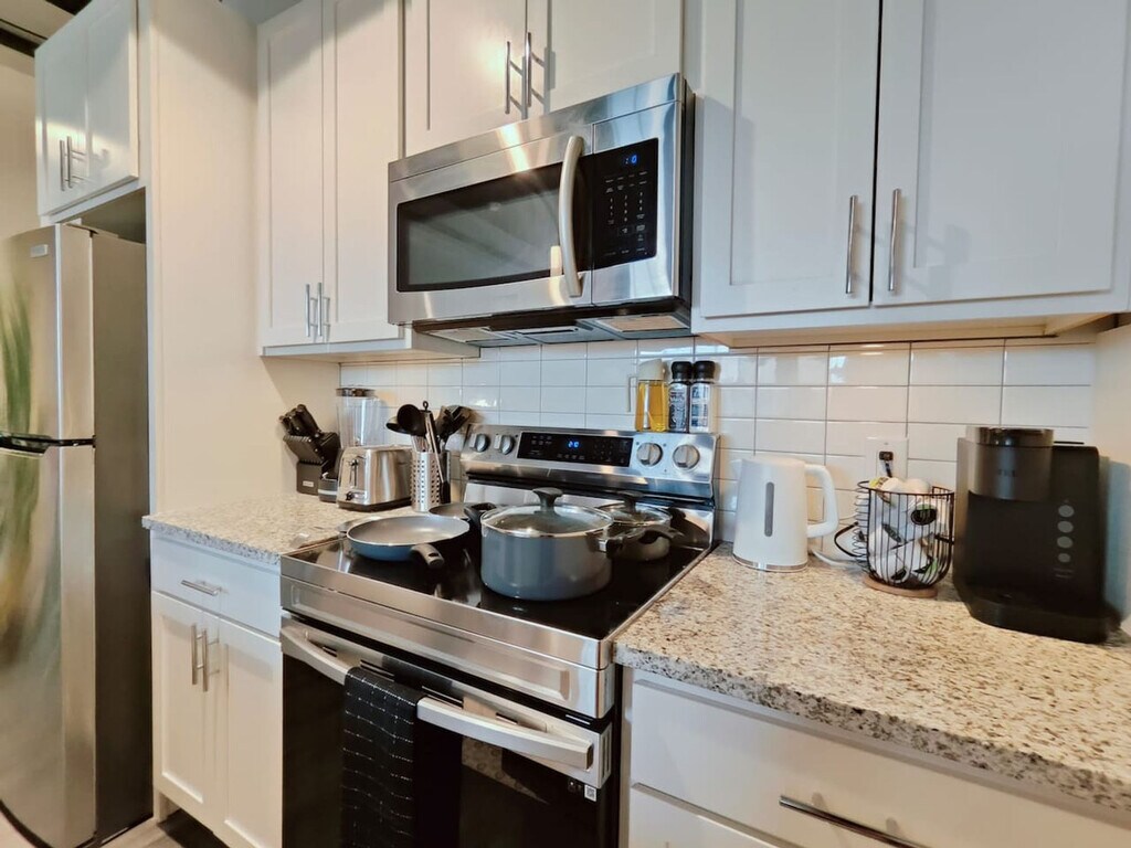 Feel at home in this studio apartment located in Philadelphia’s historic Germantown. The Wayne Junction train station is next to the building. This contemporary apartment with an urban design is fully furnished and features a king-size bed, a sofa bed, a fully equipped kitchen with a Keurig coffee maker, a refrigerator, freezer, stove, oven, and microwave. Also included are a 4K HDTV, central AC and heating, and an in-unit washer and dryer. Parking for one vehicle is included. Additional guest parking is available upon request. Nestled in Philadelphia’s historic Germantown area, this apartment offers a unique blend of history, culture, and urban energy. Along cobbled Germantown Avenue, you’ll find 18th-century homes, charming taverns, indie boutiques, and cozy cafés housed in traditional storefronts. History lovers will appreciate Wyck House, home to the country’s oldest rose garden, and the Cliveden mansion. Staying here places you in a prime location to explore Philadelphia’s rich history, culture, and vibrant city life with ease. Wayne Junction Station is just a short walk, connecting you to Center City and beyond via SEPTA’s subway and regional rail lines. Philadelphia International Airport (PHL) is just a short drive away, offering convenient domestic and international travel. There is easy access to Roosevelt Boulevard (US-1), I-76, and I-95 ensuring a smooth commute to downtown Philadelphia and surrounding areas. SEPTA bus and regional rail lines provide quick and affordable access to Center City, University City, and beyond. The Broad Street Line (subway) connects you directly to major hubs like City Hall, the Sports Complex, and Temple University. Close to Temple University, La Salle University, and Drexel University, making it ideal for students, faculty, or visiting families. Einstein Medical Center and Temple University Hospital are within reach for medical professionals and visitors. This apartment is in a City/Urban setting, and there is potential for residual noise from many different areas of the building. You will hear occasional horns and noise from the Wayne Junction train station next to the building. Guests must be 25+ years of age to make a reservation. Smoking or open flames are prohibited, and violations will result in a $1,000 charge, possible cleaning fees, and a $500 ozone treatment. Parties or events are not allowed. Quiet hours are after 10:00 PM. Only the number of guests listed on your reservation are allowed, and unauthorized extra guests will incur a fee. Pets are not allowed without prior written consent. For stays of 30 days or longer, a professional cleaning is required at least once per month, and the corresponding cleaning fee will be automatically charged. Guests are responsible for disposing of their garbage during their stay by local guidelines. Any fines or fees related to garbage disposal or any automotive waste issues imposed by the apartment complex or local authorities during your stay are the guest’s responsibility. Monthly inspections are conducted to ensure the property remains well-maintained, and you will be notified at least 24 hours in advance of any inspection. Undisclosed guests not included in the official confirmation can place your stay at risk for early termination without a refund and/or a charge of $50 per guest/pet per night. The undisclosed pet fee is $500. Guests are required to complete the digital boarding pass before check-in. Check-in is any time after 4:00 PM, and check-out is by 10:00 AM. A late check-out fee of $75 for every 30 minutes beyond the 10:00 AM check-out time will be charged. Includes a dedicated workspace and dedicated Wi-Fi.