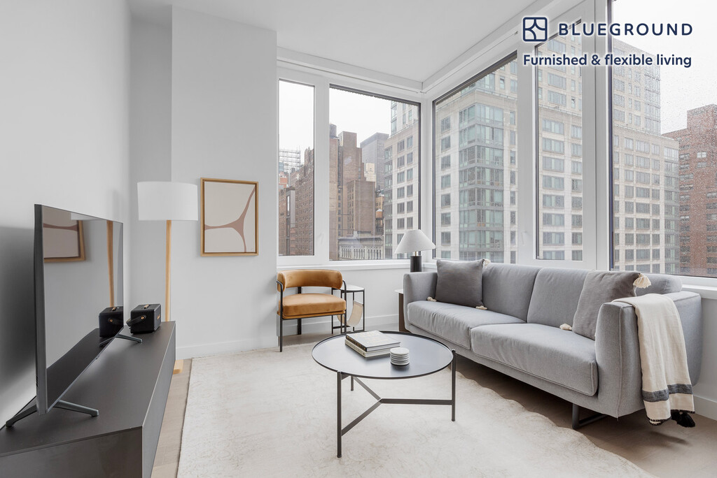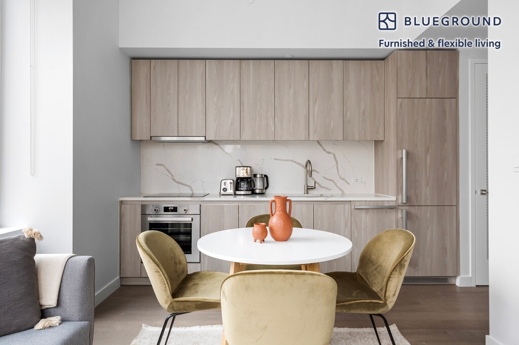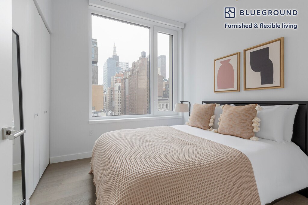 Show up and start living from day one in New York with this cheery two bedroom Blueground apartment. You’ll love coming home to this thoughtfully furnished, beautifully designed, and fully equipped Gramercy Park home with stunning views over the city. (ID #NYC1233) The advertised rate of $8,850/month is the lowest available price, based on a 12 month(s) stay with a move-in date of July 1, 2026. Rates vary depending on the duration of stay, season, and other parameters. For exact pricing and additional pricing components, please visit our website and enter your desired move-in and move-out dates. The rate is applicable when billed upfront; it can be higher if billed in multiple payments. Brokers are welcome to reach out. Were you looking for an unfurnished lease? Try Blueground instead and upgrade from unfurnished to furnished living: - Furnished at rates comparable to unfurnished - No setup or furniture costs - save thousands - Move-in ready - save time, just bring your suitcase Designed with you in mind Gorgeous furniture, fully equipped kitchen, smart TV, and a premium wireless speaker are just a few of the amenities you’ll find inside this two bedroom apartment. Ideally located in New York, you’ll find a lot to love outside as well. When you’re ready to relax, you’ll be happy to discover every Blueground bedroom comes with superior quality mattresses, luxury linens, and cozy towels. We handle everything so you can simply show up and start living. This apartment also offers in-apartment laundry. Sleeping arrangements Queen Bed, 63in/160cm Queen Bed, 63in/160cm Amenities Building amenities unique to this two bedroom apartment include an on-site: - Doorman - Dryer - Elevator - Washing machine - Lounge - Pets allowed - Rooftop BBQ Arrival and ongoing support The entire apartment is yours to enjoy! Throughout your stay, you’ll have access to our Client Experience team through the Blueground App. You can schedule additional cleanings, submit maintenance requests, and view our neighborhood recommendations with just a few taps. We’ll share all details upon confirmation of your stay. Ideally Located This furnished apartment is located in Gramercy Park, in central Manhattan and takes its name from a quaint, fenced-in private park. Home to the Roosevelts back in the 1800s, as well as many politicians and artists, the area was designed to house fashionable families. Today, it attracts young families and students who seek an inviting place to call home. On weekends, the benches and beautiful trees make the surrounding area of Gramercy Park the ideal place to jog or relax. Its central location makes it easy to get downtown or easily commute uptown for work. Second and Third Avenue offer a great variety of fine dining and bars, ideal for weekday socializing. Union Square, just a few steps away, is a bustling shopping and transportation hub. Grand Central station is only an 18-minute subway ride away. Other things to note Building amenities may have an extra cost. This Blueground apartment has flexible lease options, allowing you to book it for one month, a year, or more. Pets are welcome, though weight limits and breed restrictions apply and may incur fees. Brokes CYOF. We take great pride in ensuring every photo displayed is shot in our own units with our actual furnishings. That said, we regularly refresh our decor and furniture arrangement, which may differ from what’s pictured.