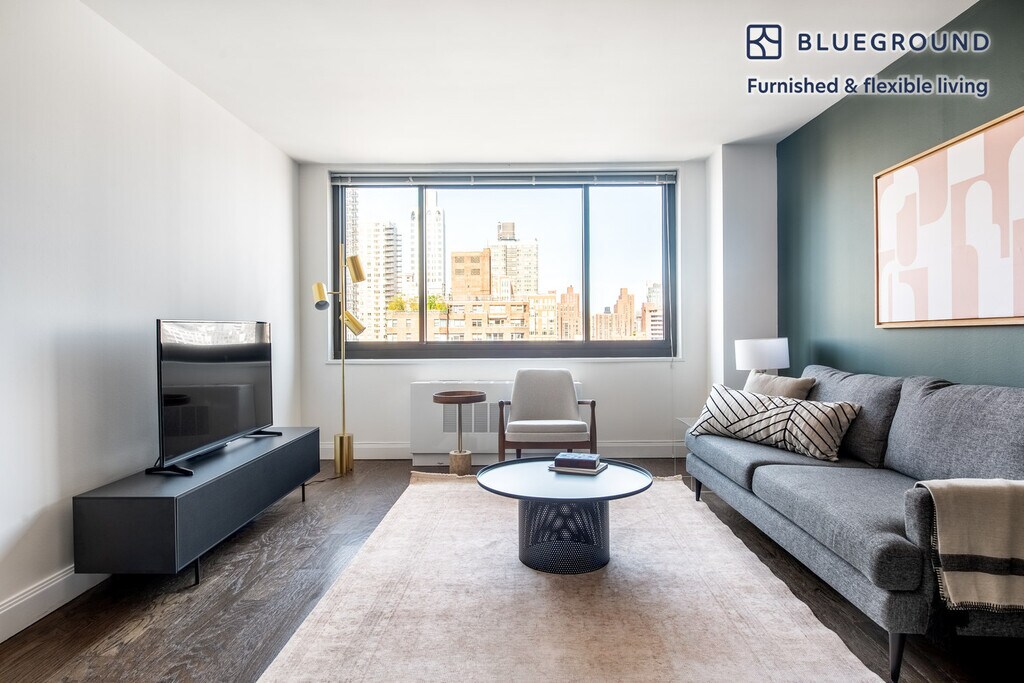 Discover the best of New York, with this one bedroom apartment in Yorkville with views over the city. It’ll be easy to simply show up and start living in this fashionably furnished apartment with its fully equipped kitchen, sophisticated living room, and our dedicated, on-the-ground support. (ID #NYC375) The advertised rate of $5,820/month is the lowest available price, based on a 12 month(s) stay with a move-in date of March 13, 2026. Rates vary depending on the duration of stay, season, and other parameters. For exact pricing and additional pricing components, please visit our website and enter your desired move-in and move-out dates. The rate is applicable when billed upfront; it can be higher if billed in multiple payments. Brokers are welcome to reach out. Were you looking for an unfurnished lease? Try Blueground instead and upgrade from unfurnished to furnished living: - Furnished at rates comparable to unfurnished - No setup or furniture costs - save thousands - Move-in ready - save time, just bring your suitcase Designed with you in mind As with any Blueground apartment, you’ll find a thoughtfully designed space complete with beautiful furniture and a fully equipped kitchen in this one bedroom property. And, thanks to our superior quality mattresses, luxury linens, and towels, you can relax knowing you’ll always feel comfortably at home. When you’re ready for some fun, you can take in the New York vibes or bring the entertainment to you with the premium wireless speaker or smart TV. This apartment also offers in-apartment laundry. Sleeping arrangements Queen Bed, 63in/160cm Amenities Building amenities unique to this one bedroom apartment include an on-site: - Doorman - Dryer - Elevator - Washing machine - Pets allowed - Playroom Arrival and ongoing support The entire apartment is yours to enjoy! Throughout your stay, you’ll have access to our Client Experience team through the Blueground App. You can schedule additional cleanings, submit maintenance requests, and view our neighborhood recommendations with just a few taps. We’ll share all details upon confirmation of your stay. Other things to note Building amenities may have an extra cost. This Blueground apartment has flexible lease options, allowing you to book it for one month, a year, or more. Pets are welcome, though weight limits and breed restrictions apply and may incur fees. Brokes CYOF. We take great pride in ensuring every photo displayed is shot in our own units with our actual furnishings. That said, we regularly refresh our decor and furniture arrangement, which may differ from what’s pictured. Also note - Other apartments in this building are undergoing renovations, and you may hear construction noise inside your apartment from time to time - The apartment's building is undergoing renovations, and you may hear construction noise inside your apartment from time to time - Some building amenities may be unavailable because of current renovations