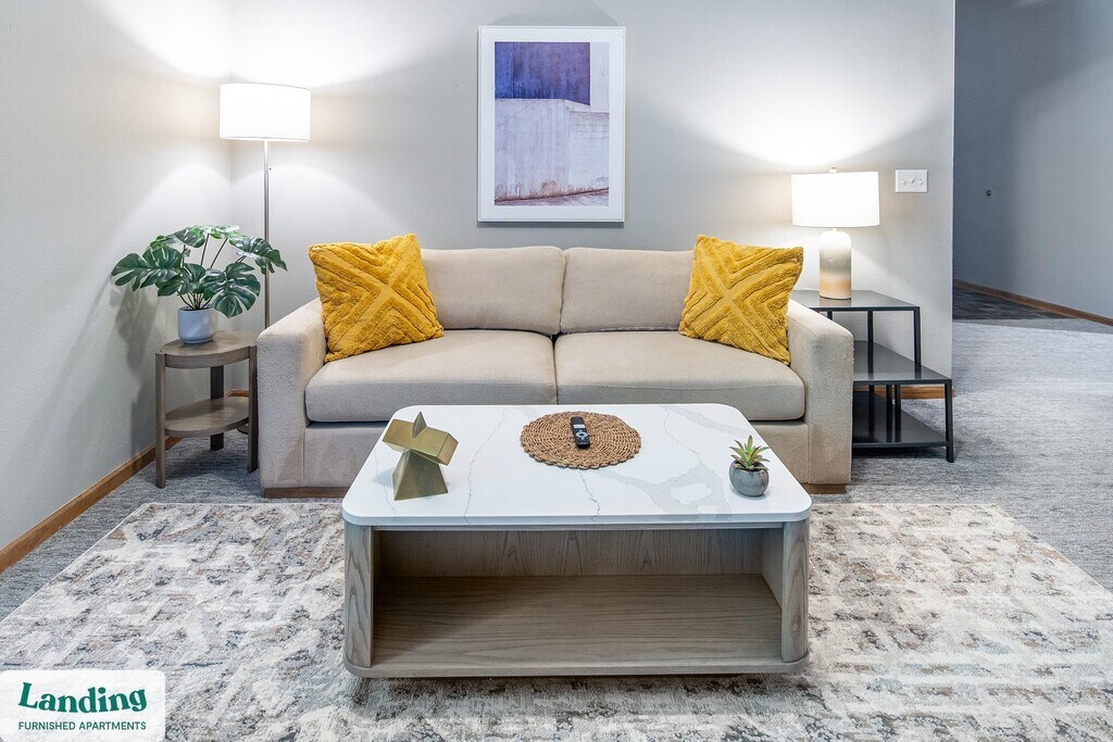 Landing offers flexible lease terms from weeks to months. Please always visit our website or contact us for the latest pricing & availability. Stay longer, save more: 6-Month Minimum base rent: starts at $1227/mo 12-Month Minimum base rent: starts at $1181/mo Landing offers flexible leases across a network of over 35,000 fully-furnished apartments throughout 375+ cities so you can rent on your terms, practically anywhere, and avoid the hassle of paying deposits or application fees. Visit to learn about all the benefits of a Landing membership, see our competitive up-to-date pricing, explore available apartments, take virtual tours, and make reservations online without jumping through traditional rental hoops. Landing's apartments at Abernathy Lofts are designed for comfortable, easy living, with the ability to stay as long as you like. Experience living with Landing Every apartment is outfitted with all the modern essentials including: custom-designed furnishings, a fully-equipped kitchen with deluxe stainless steel appliances, a gourmet coffee maker, premium linens, Smart TVs, and incredibly fast, reliable internet for working from home. When you live with Landing, you'll enjoy a hassle-free experience with the added benefit of 24/7 access to our dedicated member experience team. Some of the nitty-gritty: a background check and proof of income are required; we're completely smoke-free; bundled utility packages and pricing vary based on length of stay; pet-friendly options available; listed price reflects a 12-month minimum stay.