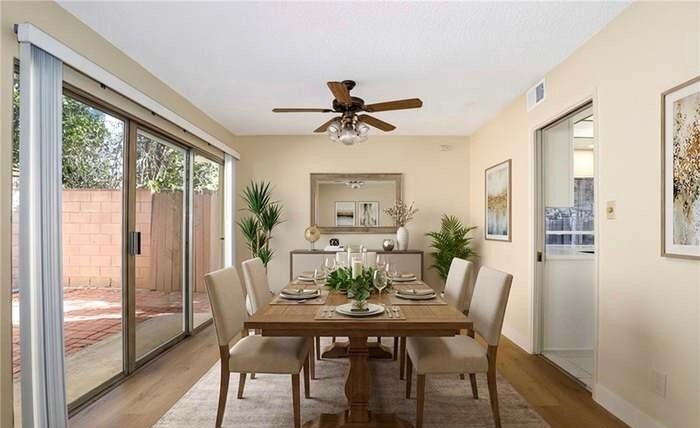 Property Id: 2478029 A remodeled front entry doors swing inward to reveal, past the foyer, an open, spacious living and dining area. A floorplan that creates an easy flow between the three bedrooms, two bathrooms, family room, and kitchen affords an ample 1,837 square feet. The beautiful remodeled kitchen features white shaker cabinets, quartz countertops, stainless range hood, microwave/convection oven, dishwasher, perfect for everyday living and entertaining. Updated with new paneled flooring, the living room is brightened by floor to ceiling windows with sliding glass leading to the back patio. Barbeque with guests in the spacious and private outdoor back patio, which includes multiple planters!