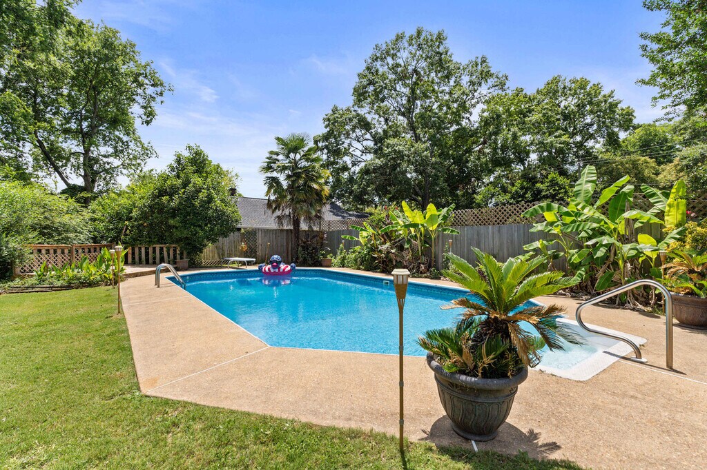 Feel at home in this stunning home! With 4 bedrooms and 2.5 bathrooms, it comfortably accommodates up to 10 guests. Step into the inviting living room, featuring a cozy sofa bed. Adjacent to the living room are the dining room and a hallway that leads to three bedrooms and two full bathrooms. Continuing through the dining room, you'll discover a well equipped kitchen, a laundry room, and the downstairs bedroom furnished with a comfy bed and sofa, and access to the backyard. The backyard is a haven for leisure and enjoyment, with a patio that has comfortable outdoor furniture and a BBQ grill. There is also a refreshing swimming pool. Pets are welcome for an additional fee. A Pack-N-Play and vacuum are available upon request. This house sits in close proximity to the heart of downtown Montgomery, offering convenient access to the city's amenities such as grocery stores, great restaurants, parks, and museums. It is just a few minutes away from Jackson Hospital and Alabama State University. The pool is open year-round and is not heated. Weekly maintenance and cleaning are performed on the pool, and access to the yard/pool area will be needed on service day. Please respect the neighbors and avoid entering their property, and ensure the pool is accessed exclusively through the home. Parties are prohibited at the home. Quiet hours are between 10 PM and 7 AM. Pets must be crated when they are left unattended, and are not allowed on furniture or beds; all waste must be cleaned up from the yard. If there is evidence of pet hair on the furniture, excess hair in the home, stains, or waste found in the yard or home, you will be charged the cost to clean this. If our cleaning crew reports any signs of smoking cigarettes, vapes, e-cigs, pipes, etc. (smell, ash, etc.) in or around the home, an automatic $500 damage charge will be incurred. The same charge applies if cigarette butts are found outside of the home. If marijuana is smoked in or around the home a $500 fee will be charged, and details about the reservation may be turned over to the appropriate authorities. [SI]