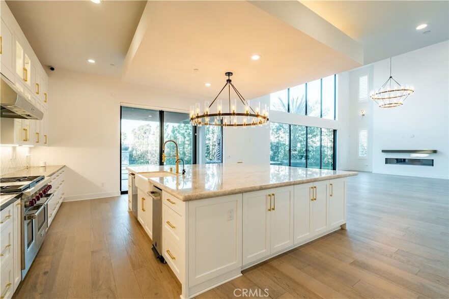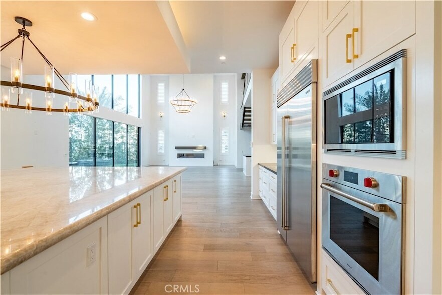 Introducing a rare opportunity! The stunning Santi Elite Summit Model, one of the largest and most distinguished floor plans in the prestigious Westcliffe community. Perfectly positioned on a sweeping 13,000+ sqft corner lot at the end of a quiet cul-de-sac, this architectural showpiece offers captivating panoramic views of the mountains, twinkling city lights, and rolling hillsides. Designed for resort-style living, the private backyard is a true sanctuary. A state-of-the-art saltwater smart pool with beach entry, tranquil water features, and a dramatic water wall sets the tone for outdoor elegance. The detached spa lounge area features a freestanding TV wall, an expansive fireplace flanked by custom fire pilasters, and multiple fire features an entertainer s dream with a view. Over 100 mature trees surround the property, creating a sense of privacy and natural serenity rarely found. Recently, the entire exterior was fitted with discreet bird netting an effective and humane solution to prevent birds from entering unwanted areas, adding another layer of thoughtful care and value to the home. Inside, the home is a masterpiece of modern design, showcasing refined finishes, thoughtful upgrades, and curated details throughout. The open-concept layout is complemented by a sleek built-in wet bar and an impressive three-story floating staircase that leads to a versatile upper-level bonus room with its own full bath and expansive view terrace. Window coverings throughout include a combination of custom shutters and electric shades, blending style with convenience. Wellness and sustainability are seamlessly integrated with a private home gym, whole-home water softener and purification system, smart irrigation, and fully paid solar panels. Tech-forward conveniences include EV charging stations, two inside the garage and one exterior and premium sliding glass doors that create a seamless indoor-outdoor living experience. Enhanced with builder upgrades and custom options, this residence stands as a symbol of sophistication and distinction. Located within the highly desirable Porter Ranch community, enjoy close proximity to top-rated public and private schools, including the renowned Porter Ranch Community School and Sierra Canyon.