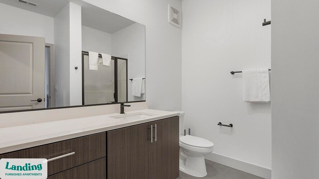 Landing offers flexible lease terms from weeks to months. Please always visit our website or contact us for the latest pricing & availability. Stay longer, save more: 6-Month Minimum base rent: starts at $2578/mo 12-Month Minimum base rent: starts at $2264/mo Landing offers flexible leases across a network of over 35,000 fully-furnished apartments throughout 375+ cities so you can rent on your terms, practically anywhere, and avoid the hassle of paying deposits or application fees. Visit to learn about all the benefits of a Landing membership, see our competitive up-to-date pricing, explore available apartments, take virtual tours, and make reservations online without jumping through traditional rental hoops. Landing's apartments at Sphere are designed for comfortable, easy living, with the ability to stay as long as you like. Experience living with Landing Every apartment is outfitted with all the modern essentials including: custom-designed furnishings, a fully-equipped kitchen with deluxe stainless steel appliances, a gourmet coffee maker, premium linens, Smart TVs, and incredibly fast, reliable internet for working from home. When you live with Landing, you'll enjoy a hassle-free experience with the added benefit of 24/7 access to our dedicated member experience team. Some of the nitty-gritty: a background check and proof of income are required; we're completely smoke-free; bundled utility packages and pricing vary based on length of stay; pet-friendly options available; listed price reflects a 12-month minimum stay.