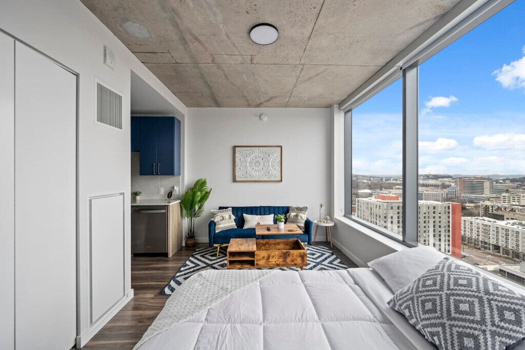 Experience the vibrant lifestyle of Nashville in this stylish, fully furnished studio apartment on West End Ave. Situated in a newly constructed modern residential building, this home is drenched in natural light and features state-of-the-art appliances and modern textures. Located less than one block from the Medical District and Vanderbilt campus, you'll feel at home in this dynamic space. The apartment offers a sleek and modern living environment with state-of-the-art appliances and dynamic interior spaces. The abundance of natural light enhances the modern textures and stylish furnishings, creating a welcoming and comfortable atmosphere. Nestled on West End Ave, this apartment is ideally located less than a block from the Medical District and Vanderbilt campus. Enjoy the convenience of being close to public transportation and explore nearby attractions, dining, and entertainment options that Nashville has to offer. The building requires all tenants to pass a background check via an emailed link, with all associated fees billed directly through KeyCheck. This property is strictly for corporate housing and no vacation rentals are allowed.