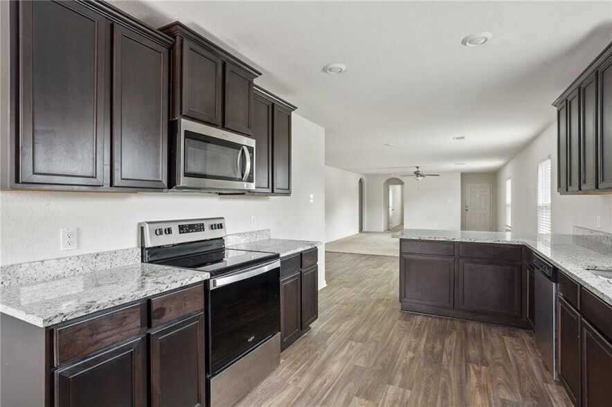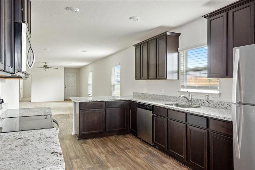 Built charming 4 bed, 2 bath single story. The charming Medina plan is located within the community of Stonebridge Crossing and features the space you desire, all on one story!. Fridge, Washer and Dryer included!! Blinds, Sod ,Irrigation and extended patio in the backyard.Upgrades featured in the Medina are energy-efficient kitchen appliances, granite countertops, designer wood cabinetry, luxury vinyl-plank flooring and an attached two-car garage .Residents at Stonebridge Crossing enjoy incredible community amenities. Inside this beautiful community, residents enjoy a park with a children s playground and covered picnic pavilion with barbeque pits perfect for grilling out with your friends and neighbors. Additionally, Stonebridge Crossing has plenty of open green space, a soccer field, walking trails and a dog park for your furry family members!